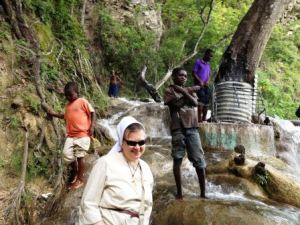 It is another beautiful ride up and through the mountains. In Mirebalais they have a sanctuary at the Church of Our Lady of Mount Carmel. Tradition has it that Mary appeared on a large leaf of a palm tree and left her image of Our Lady of Mount Carmel. The people have great devotion to Our Lady of Mount Carmel, and on July 16 they have an annual feast that hundreds of people come.