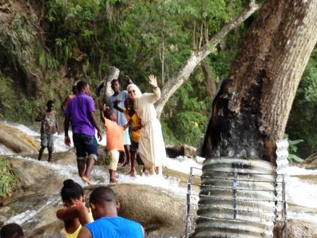 After this we went to the waterfalls, what a beautiful natural site. We were greeted by some young boys who escorted us to the falls. They surprised us by knowing some English. Of course they wanted some money for their kindness. You can’t imagine how cool and refreshing the water is.