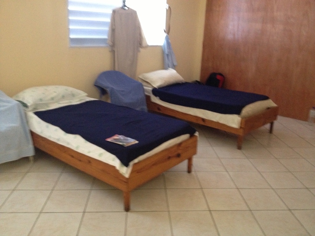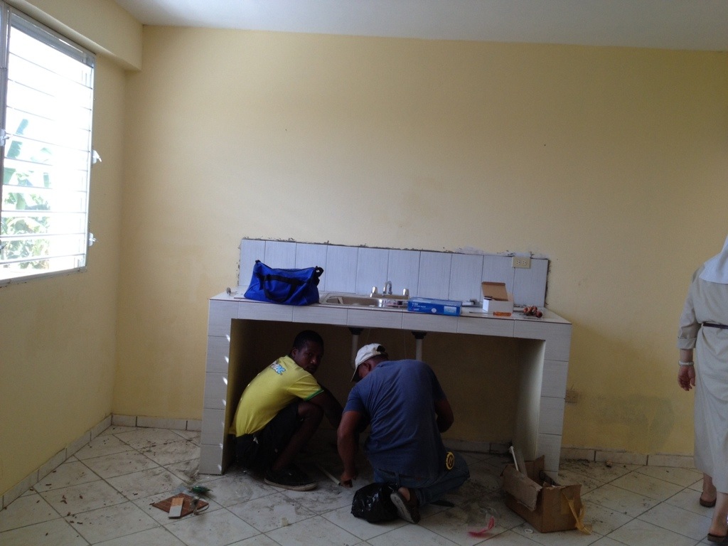 Our new home has three rooms, but now we have made it into four. In the center of our home is the chapel. At this time it has two chairs, and a tiny table with a crucifix, an icon of Our Lady of Perpetual Help, and a small statue of Blessed Mary Angela. In another room we have the kitchen and dining room all in one. We have borrowed a table and six chairs from the Diocesan Pastoral Center and a refrigerator and gas stove top that is on loan. The other large room was divided in two that are dormitories, one for Sisters and the other for volunteers. We have a bathroom with a newly built shower. All are welcome!