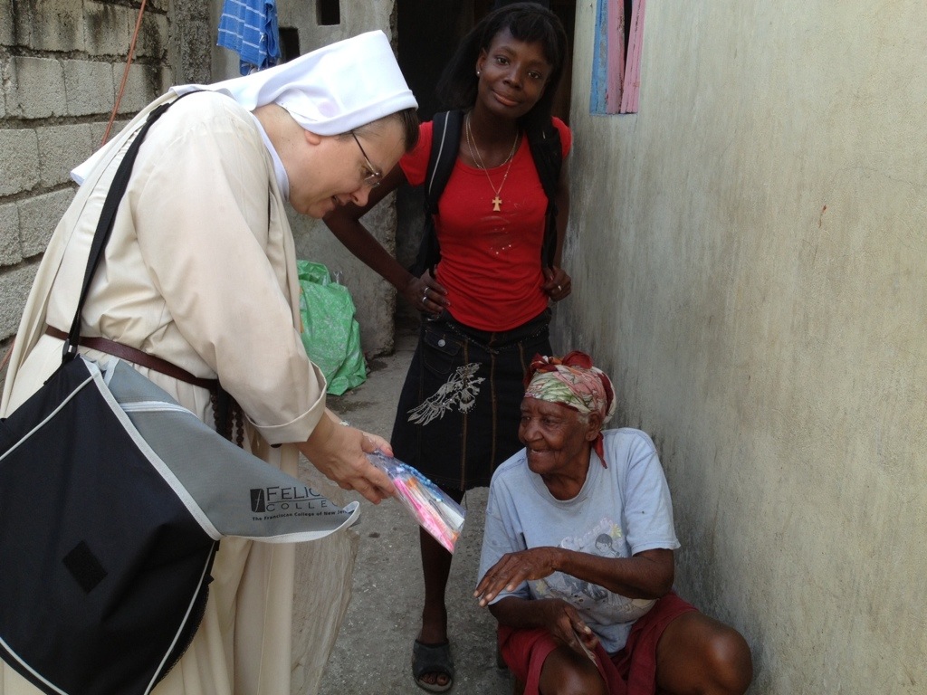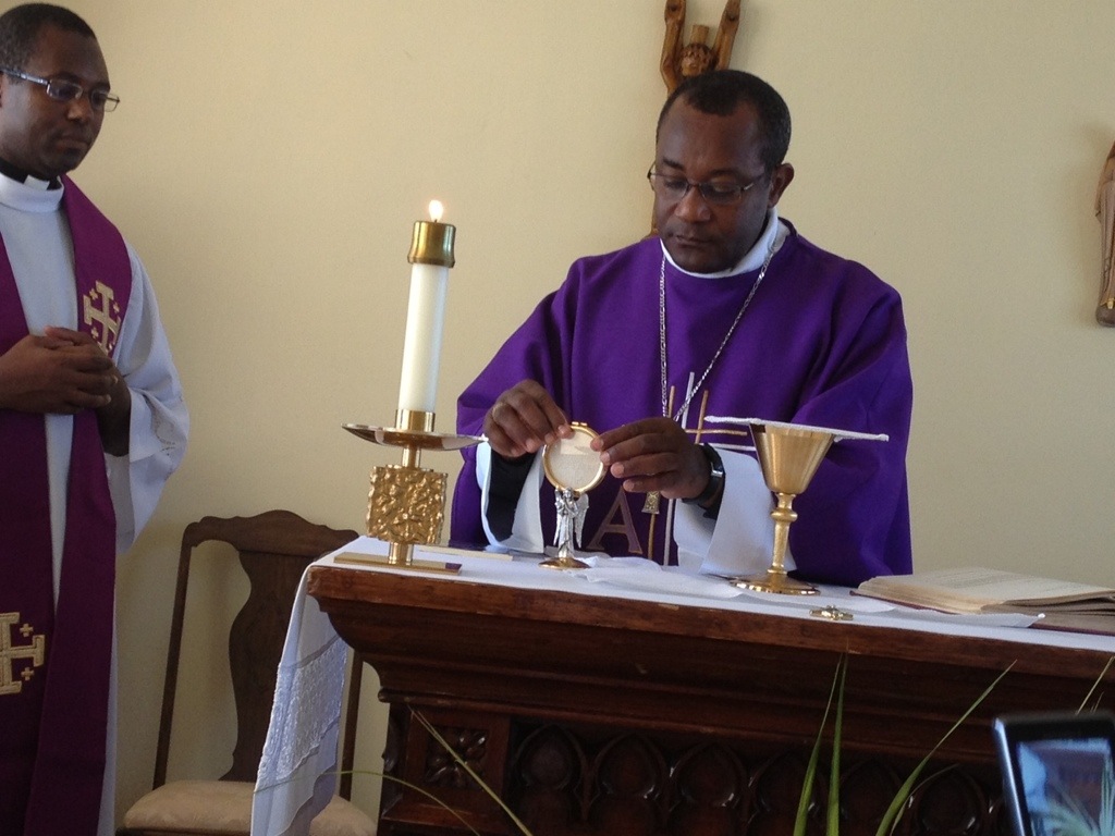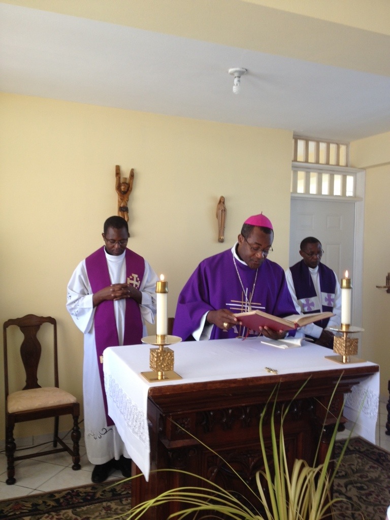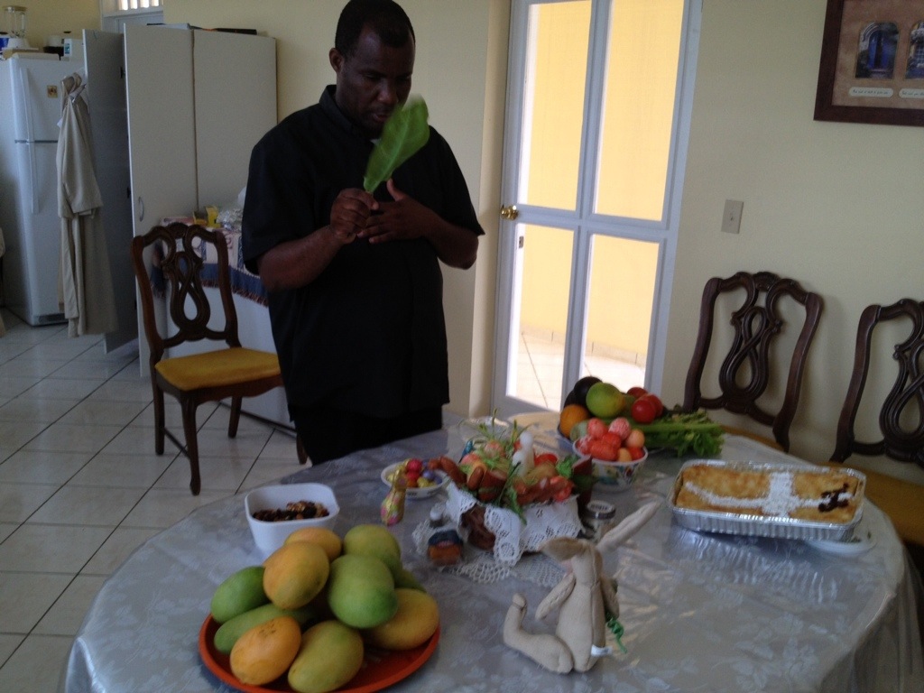 On the Monday, March 25, six days before Easter Sunday, Bishop Launay Saturne, celebrated the Eucharist and blest our new home in Jacmel, Haiti. We were blest with the presence of Sister Mary Jolene and Sister MaryAnne, provincial council members. Even though our chapel is small, we were graced with the presence of friends and neighbors who have helped us begin the Felician mission in Haiti. Mass was in Creole and English. After the house blessing, we had a Haitian feast prepared by our neighbor. As soon as our guests left, our neighborhood boys, who come to visit us every evening, stopped by and shared in the feast. It was truly a grace-filled day. We ended our day with Eucharistic Adoration for the first time in our chapel, using our new small monstrance, a gift given to us by SM Christopher and her Council. This was such a great and beautiful gift given to us for this special day! Mesi Bondye mesi!