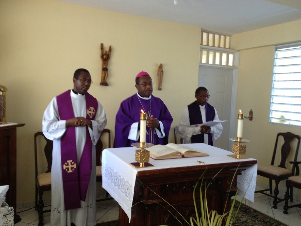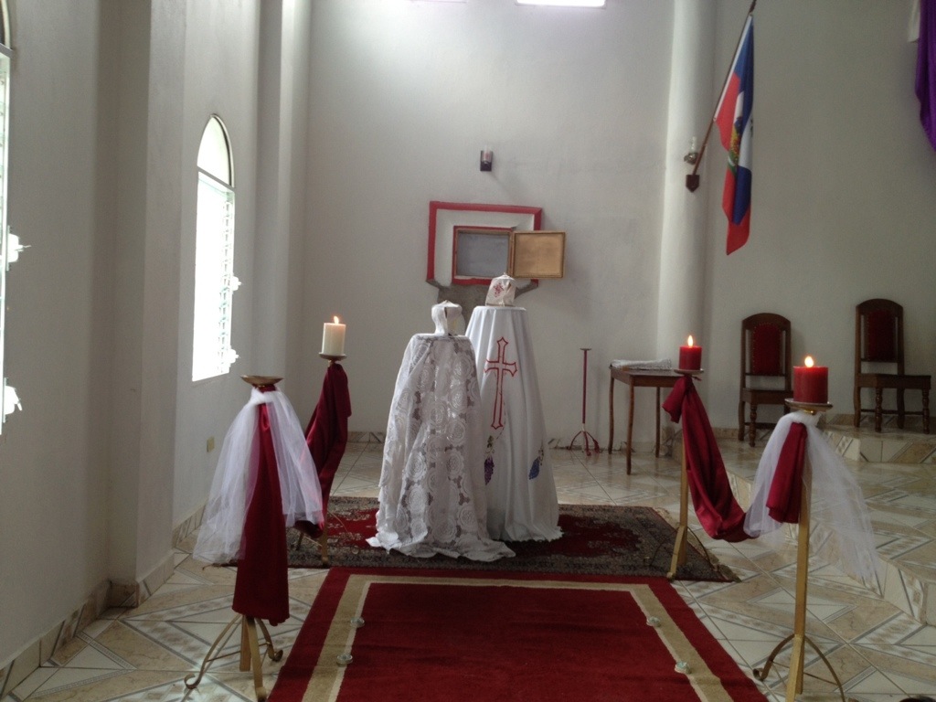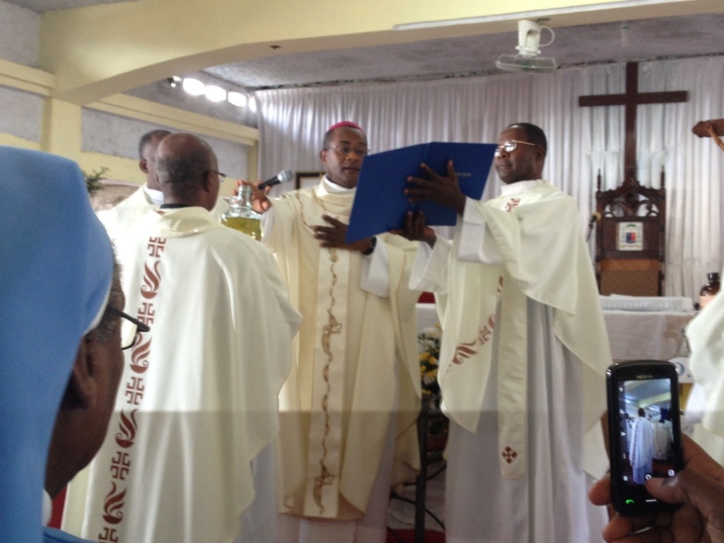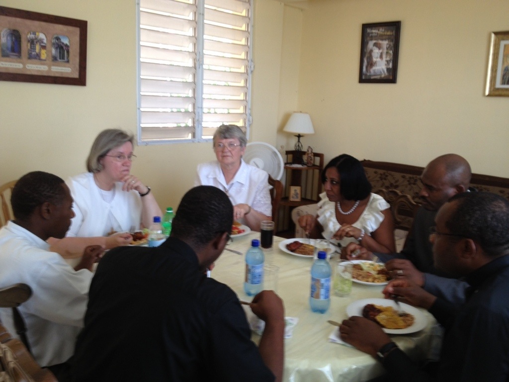 On the Monday, March 25, six days before Easter Sunday, Bishop Launay Saturne, celebrated the Eucharist and blest our new home in Jacmel, Haiti. We were blest with the presence of Sister Mary Jolene and Sister MaryAnne, provincial council members. Even though our chapel is small, we were graced with the presence of friends and neighbors who have helped us begin the Felician mission in Haiti. Mass was in Creole and English. After the house blessing, we had a Haitian feast prepared by our neighbor. As soon as our guests left, our neighborhood boys, who come to visit us every evening, stopped by and shared in the feast. It was truly a grace-filled day. We ended our day with Eucharistic Adoration for the first time in our chapel, using our new small monstrance, a gift given to us by SM Christopher and her Council. This was such a great and beautiful gift given to us for this special day! Mesi Bondye mesi!