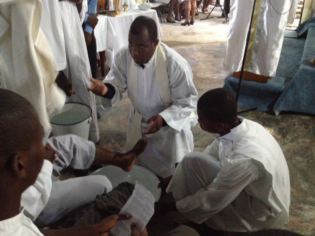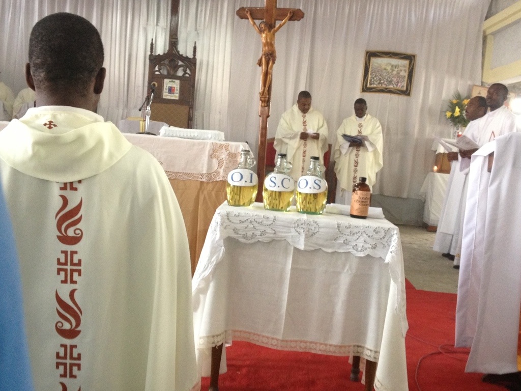 On Holy Thursday, in the morning, we went to the Chrism Mass in the Cathedral. In the entrance procession, the Bishop with his priests carried the holy oils to be consecrated in the beautiful ritual that the church gives us for this day. Before that ritual, all the priests had the renewal of their priestly promises. After the celebration, all the priests and religious were invited to the Pastoral Center to celebrate together.