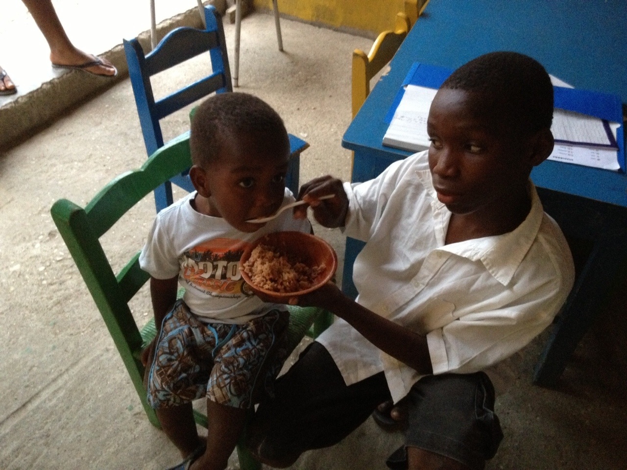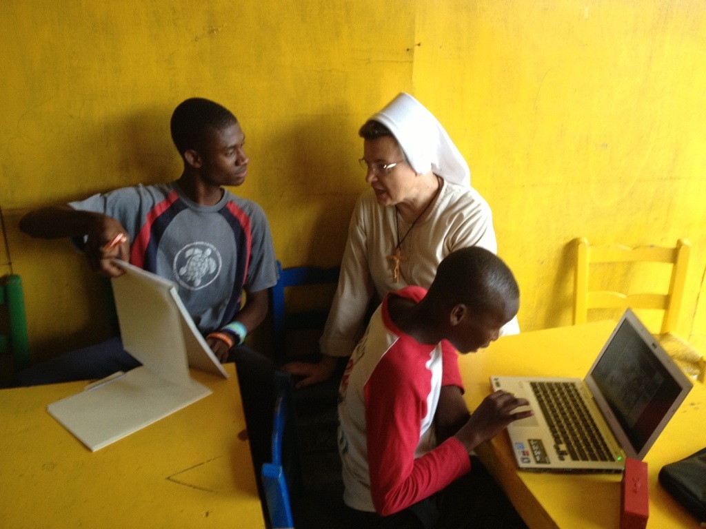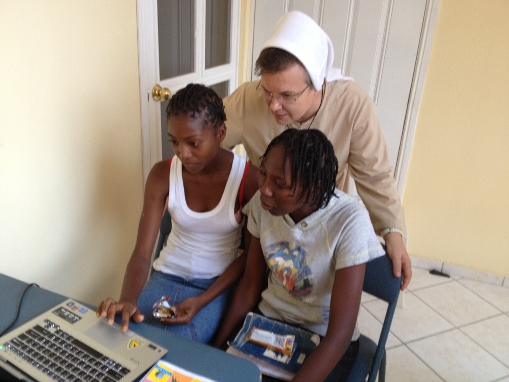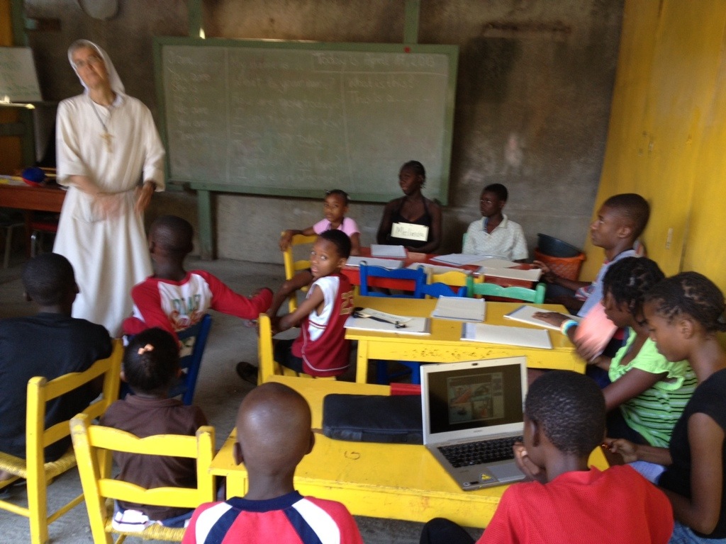 Today we had to move our class to a bigger room because we are growing. We are using one of the classrooms in the pre-school on the first floor. It is not easy to lead a class with students between the ages of 10-19. Our students love to come and be involved in all the activities we plan for them. They are truly eager to learn. We cannot wait until we will have more computers. The few minutes that each of our students can use the computer to learn from the Rosetta Stone Program is a great reward for them. They are also learning how to use the computer. We, in turn, are benefitting from our students and learning more and more Creole.