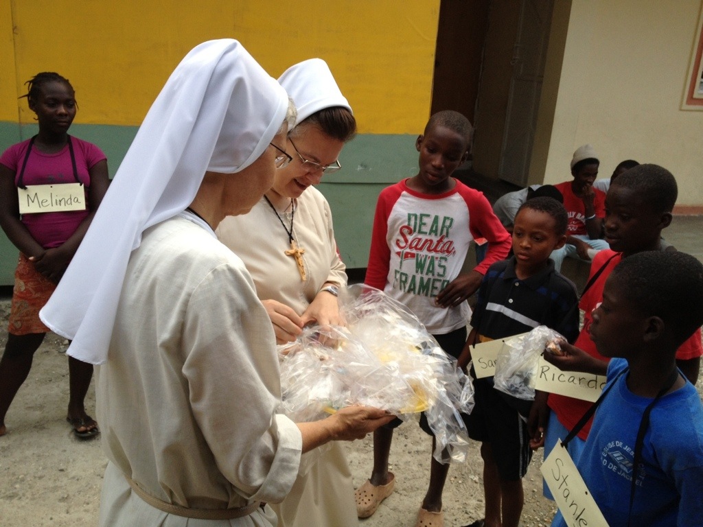 After reading SM Colette’s reflection printed in our Update, on this vigil of the 20th Anniversary of the Beatification of Blessed Mary Angela, we cannot help but think about the poor children Blessed Mary Angela met on the streets of Warsaw. We truly feel her presence here in Jacmel. Many of our kids who come to us do not have shoes, or there is hardly any sole left on the ones they have. They do not know any prayers…not even how to make the sign of the cross.