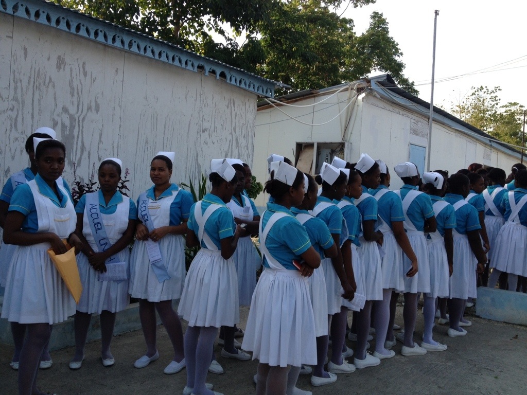 On Saturday evening, we went for Mass that celebrated the first year Nursing students who received their “habit” (uniform) to continue for clinical practice in the hospital here in Jacmel. There were about 80 female students in the class. The Mass was beautiful, and the singing by the students was glorious. Bishop Launay Saturne reminded the students that they have been given a mission as Christians to be healers of both the body and the soul.