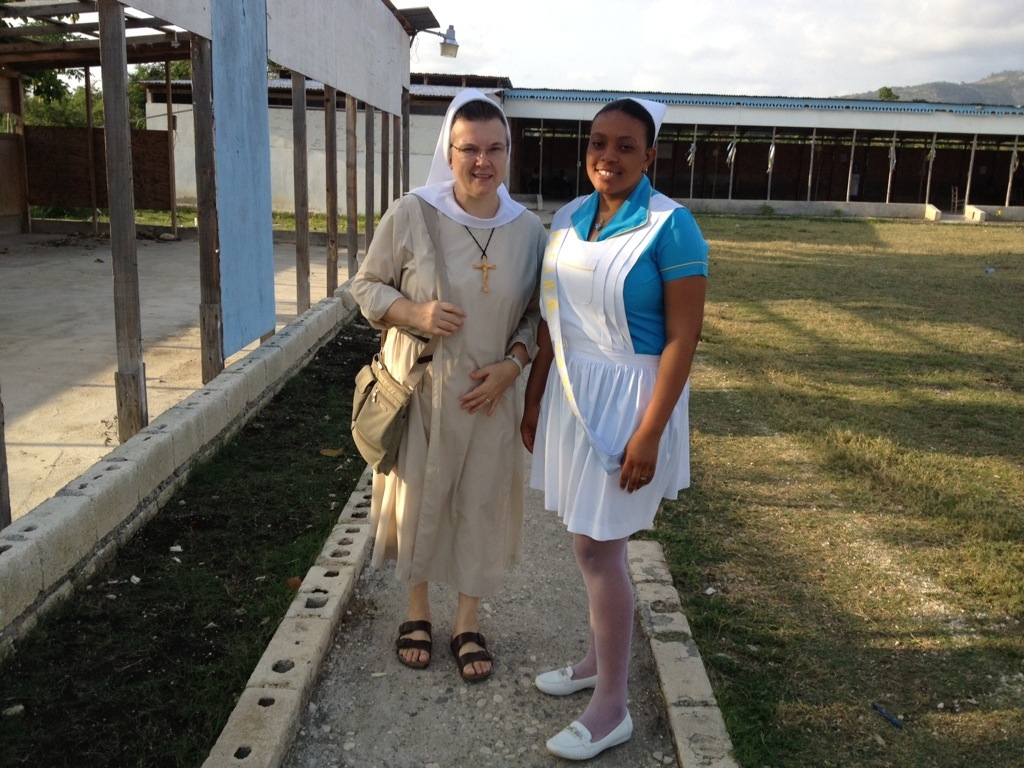 A few days ago, we had the opportunity to visit the Nursing Program at Notre Dame University here in Jacmel. Knowing how excellent, professional and efficient the Nursing programs are at Madonna University and Felician College, for Notre Dame University, there is just one word that comes to mind–simplicity. The school was destroyed because of the earthquake and still has not been rebuilt. They relocated to an open-spaced area, having classrooms with tin roofs; but last Fall Hurricane Sandy destroyed some of their classrooms, and they are still being reconstructed. This did not stop the Nursing Program; the professors and students are committed and dedicated to working together for the health and dignity of all Haitian people.