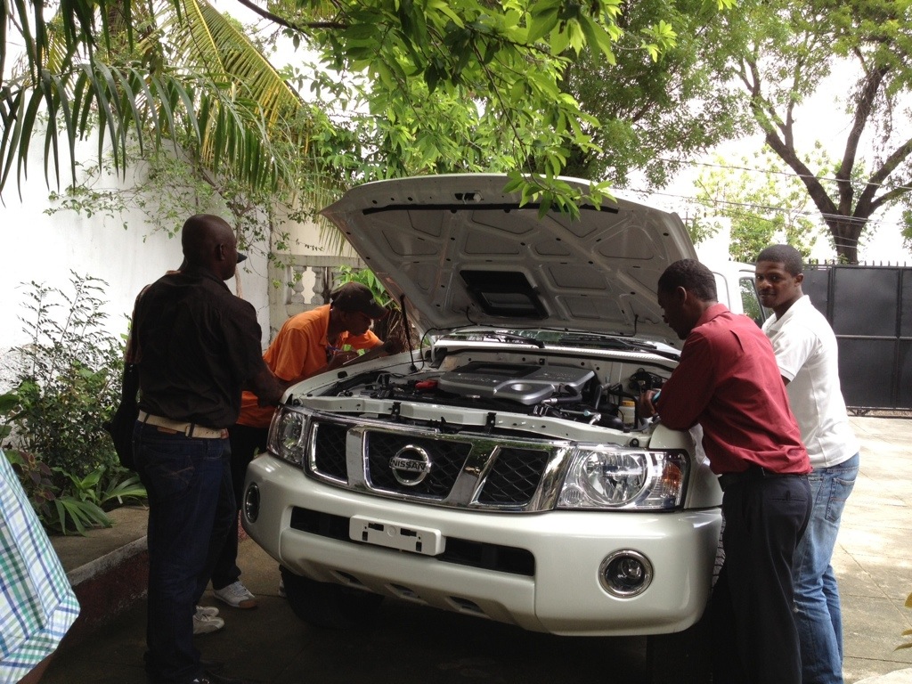 In the afternoon of Wednesday, May 1, we traveled to Port au Prince. We stayed overnight at the home of our friend, Yvon, because we went on Thursday morning to the Nissan car dealer to get the car. We finally saw our Nissan Patrol. We needed a car with 4-wheel drive in order to handle the roads in Haiti. We will be traveling to the mountain chapels, visiting the people where there is the most need and, hopefully, we can soon begin a mobile clinic. We will also need the car to bring volunteers from the airport and to places for their mission experience. The car is an 8-passenger vehicle, but we know in Haiti you fit many more people when it comes to a ride. We know this personally because we need to do that to go anywhere.