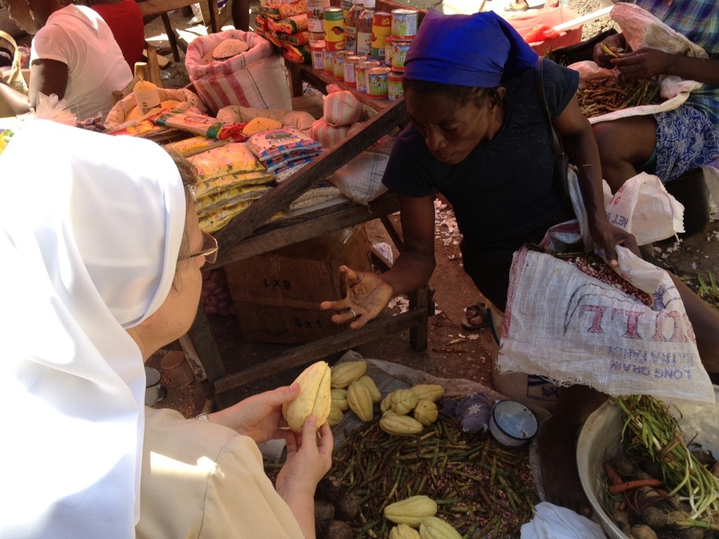 Once a week we go to the outside market to get our fruits and vegetables. When we first arrived in Jacmel, we would always go with someone since we did not know the language too well. At the beginning, people were surprised that we were doing our shopping in the marketplace. The people are getting to know us, and we know them. Now we are able to go ourselves, since we have the car and we know how to bargain. The people expect us to bargain with them. We know when they are asking too much for an item, and they are surprised. The market is a great place to practice our Creole. It is an even greater place to get to know the people and to evangelize.