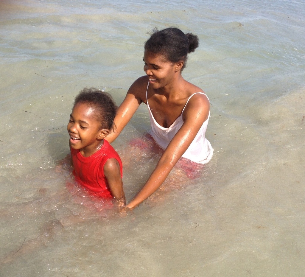 Jacmel is located on the Caribbean Sea, which can be seen from our roof. The beach, where people go to swim, is about 15 minutes from our house by car. Many Haitians have never had the opportunity to go to the beach to swim and have fun. Our neighbors, Lelun, and her daughter, Cassandra, have never gone to the beach. This was the first time Cassandra was ever in the water swimming. What a joy it was to see the excitement in her face as she stepped into the warm sea! Clara and Gael also joined us, and we all had a good time.