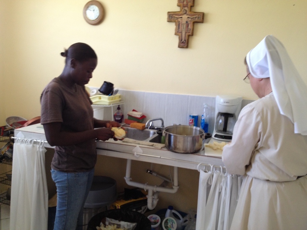 As we visit the market and see the variety of fruits and vegetables, we are learning how to cook them. Our friend, Jeremine, taught us how to cook mirliton, and Romey taught us how to cook green bananas.