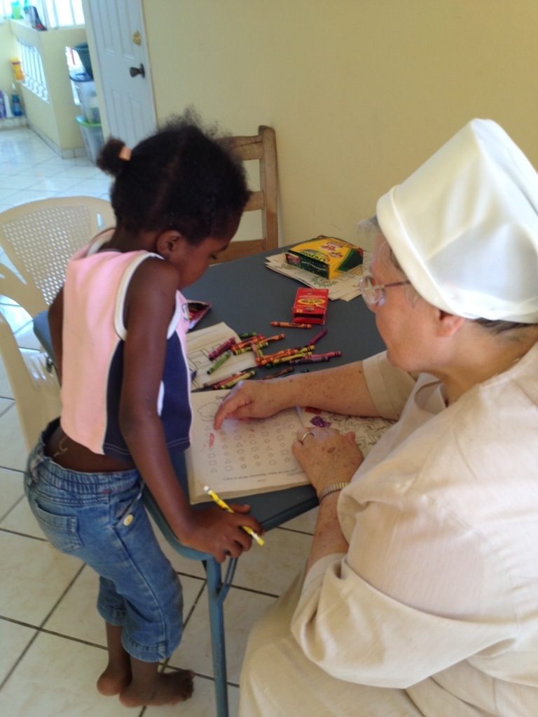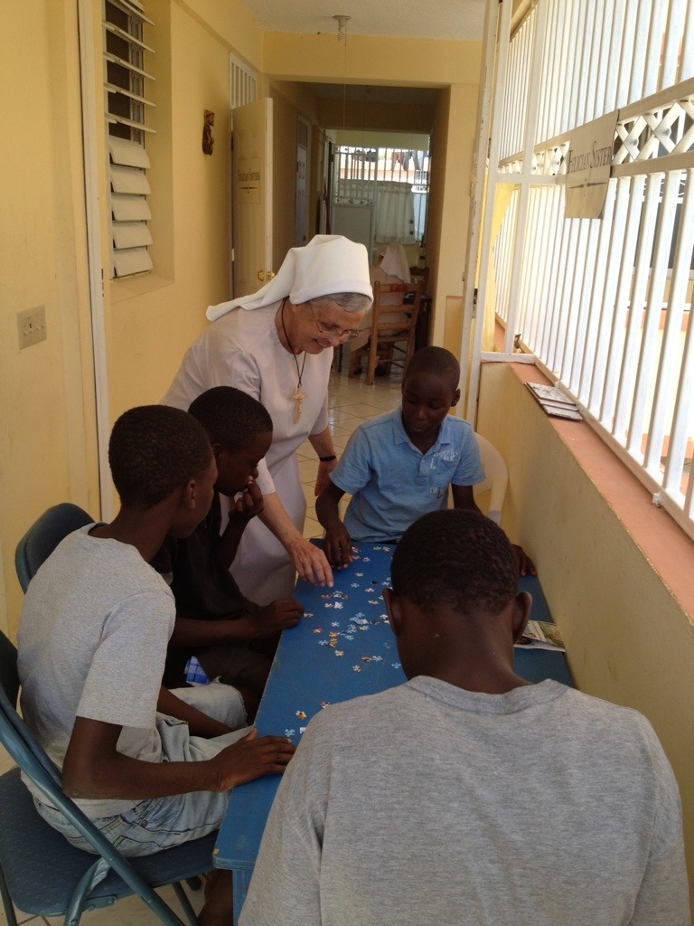 Sisters Angela and Janet are feeling more and more comfortable as they share daily life here in Jacmel. The ministry of presence is powerful as the sisters accompany our kids in the simplest way. Sr. Angela has been tutoring and having conversations with our students in French. Sr. Janet enjoys helping and watching our kids do puzzles and color.
