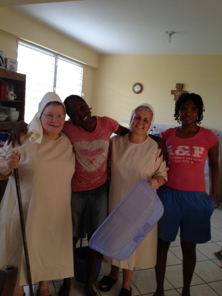 We returned to our home in Jacmel yesterday in the early afternoon. After being away for a month, the house needed cleaning. Sisters Angela and Janet got to work right away. Our friends, Rosemarie and Lelun, joined us. Yes, our hope in the love of Christ calls us to work together, and we give thanks for being One in the Body of Christ.