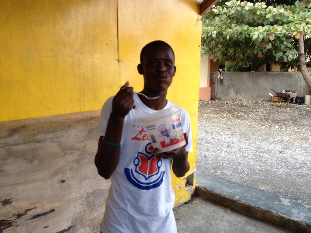 Since February 2013, we have had a food program for our kids who come for English classes. When Lebrun’s family were asked to leave, we had to find a new cook and replace the outdoor kitchen to be used for cooking. As always, God provides. Now we have a small new kitchen and a new cook. Adelia is the mother of one of our students and the grandmother of several other students. This time our kitchen is running differently, with the young people helping with the shopping for food, with cooking and with cleaning up. This is a real community project .