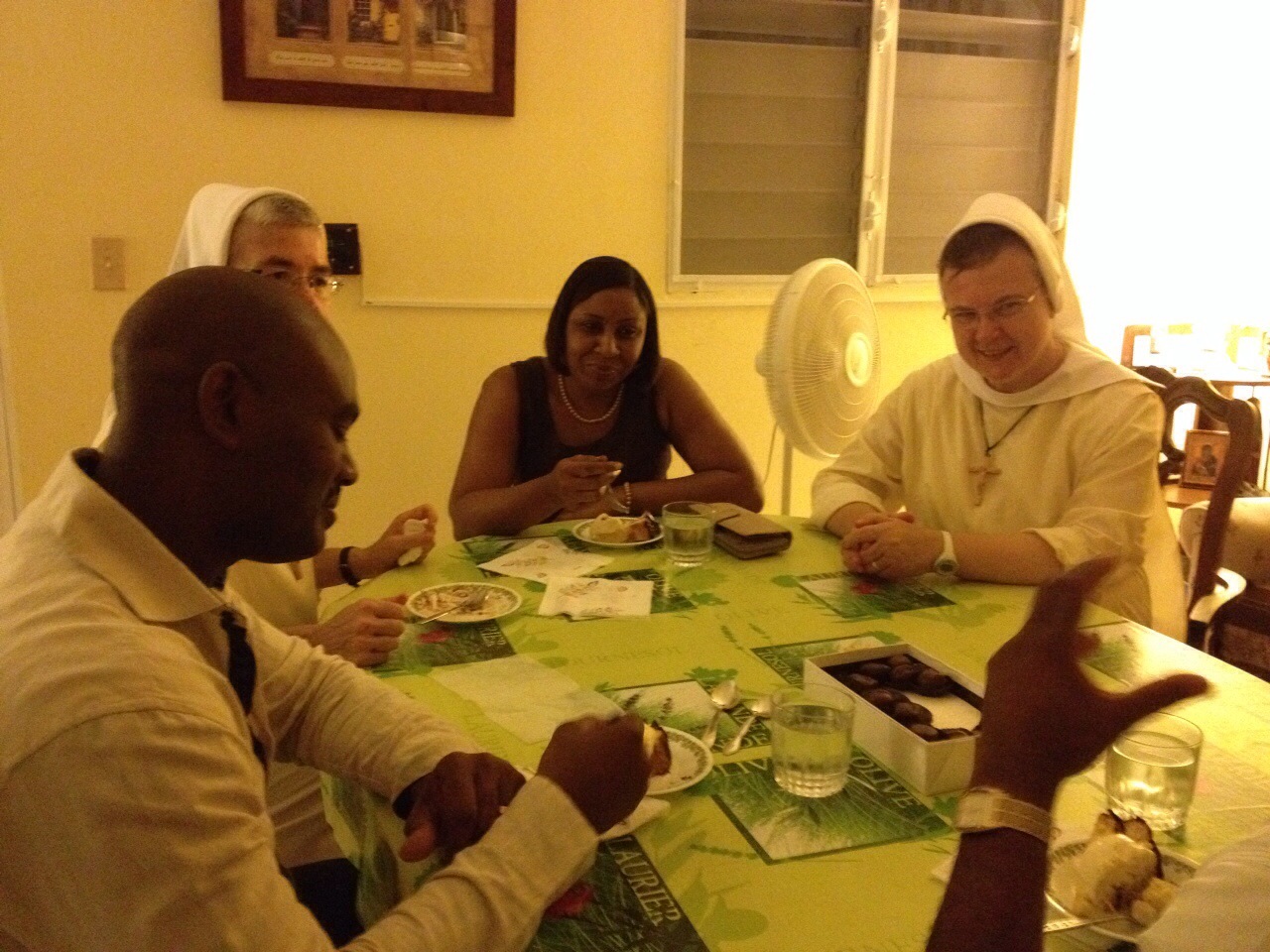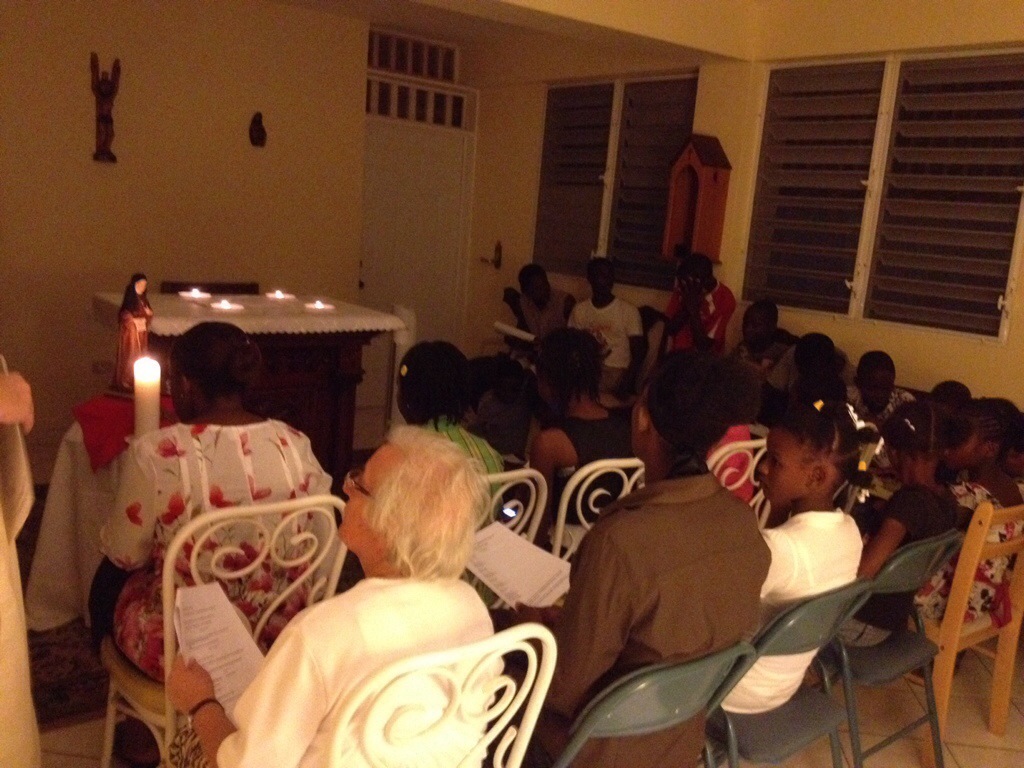 On November 21, the Feast of the Presentation of Mary and the founding day of our Congregation, we joined Felician Sisters throughout the world in an hour of prayer and celebration before the Blessed Sacrament. It was our first prayer experience in our chapel conducted all in Creole, We used the Holy Hour which was used throughout the province, but we translated the prayers and the songs into Creole. It was moving to see all singing “Blessed Angela, your light we want to be” with passion in their native tongue. We introduced our foundress, Blessed Angela, and gave a short history of our Congregation. At the end of the Holy Hour, the children received Blessed Angela medals and the adults received Blessed Angela rosaries. It was a powerful experience of sharing our mission and charism with so many people gathered in our chapel. After the service, everyone shared in a “bon fet,” with cake and ice cream.