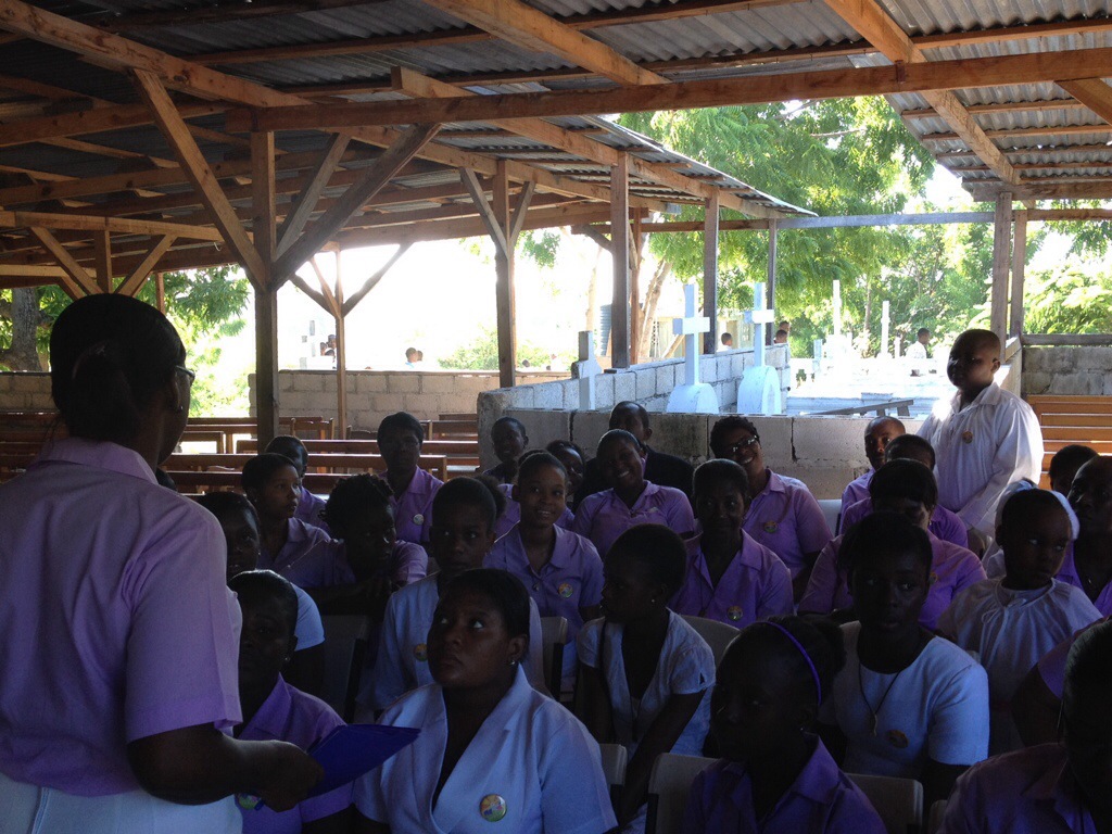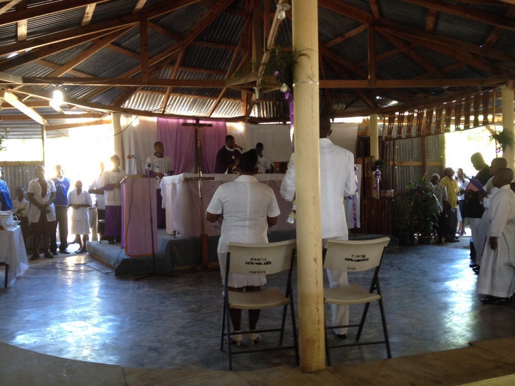 To celebrate the First Sunday of Advent, we went to St. Michael’s Parish. We like to attend liturgy there because the whole Mass is in Creole. Before we went into the place of worship (because they don’t have a Church), we noticed many people gathered outside dressed in purple. They really enter the liturgical season even by what they wear. We each said to ourselves, “Too bad we don’t have purple on for today.” We wish we could share with you a video we took of the choir singing; it is so beautiful. Our Creole teacher, Madam Omanie, is the choir director.