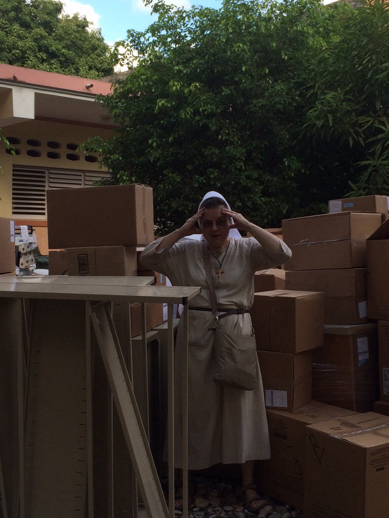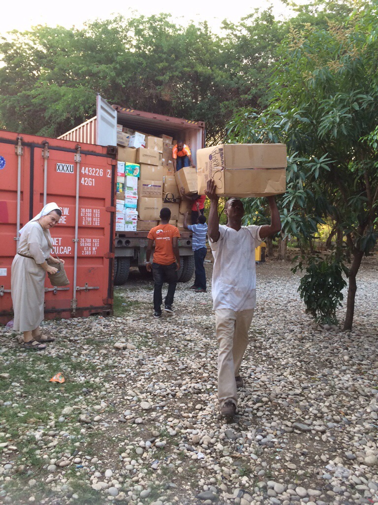 On Wednesday, February 12, at 8 p.m. the container that was sent through the generosity of Ann Zon and her team from the Buffalo, NY, area arrived in Jacmel. Ann, is a former Felician Sister who always wanted to be a missionary but could not. She left the Felicians but continued to have a missionary heart, going to Nicaragua many rimes a year. When she heard that the Felician Sisters have a mission in Haiti, she contacted us and offered to help by sending a container. Half of the container was filled with donations that Ann gathered for the poor and the other half was filled with medical supplies collected by SM Giovanni from Livonia, MI.