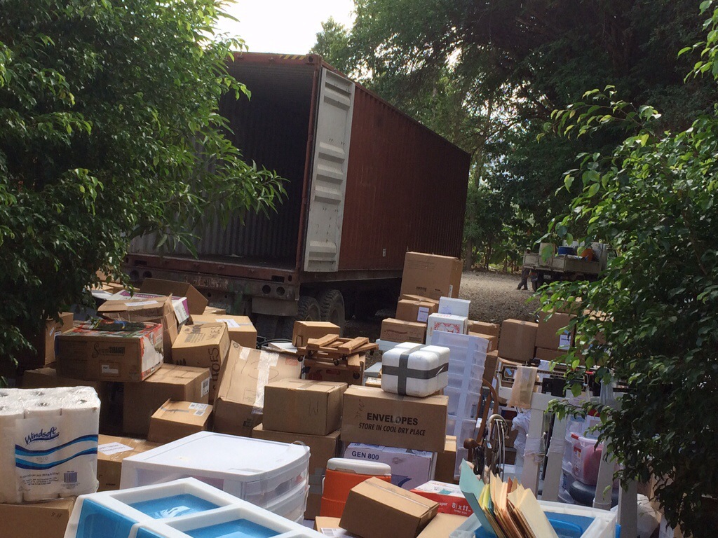 The next morning, the container, filled with 990 boxes, had to be emptied within a few hours since the truck and the container needed to be returned to Port au Prince. With the help of a few strong friends, we did it in two hours. Boxes and medical supplies were everywhere. We needed to store these boxes and take them back to our house where we have the clinic office and medical supply room. The rest of the boxes went back into our container. Boxes that were full of clothes, shoes and toys were distributed to the poor in the mountains. As you can imagine, we have been very busy this past week.🚚