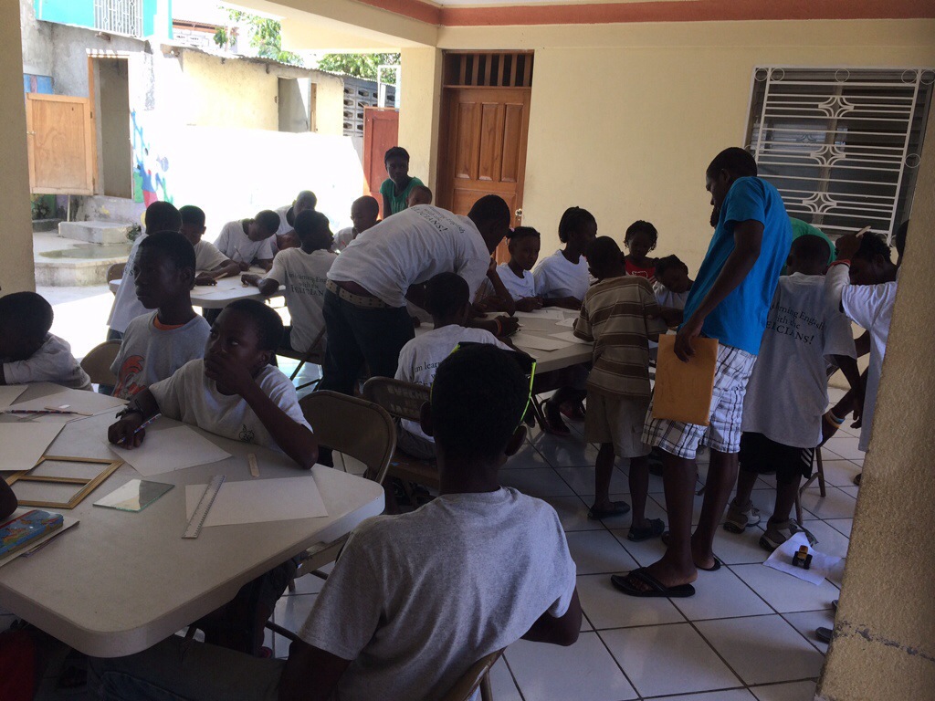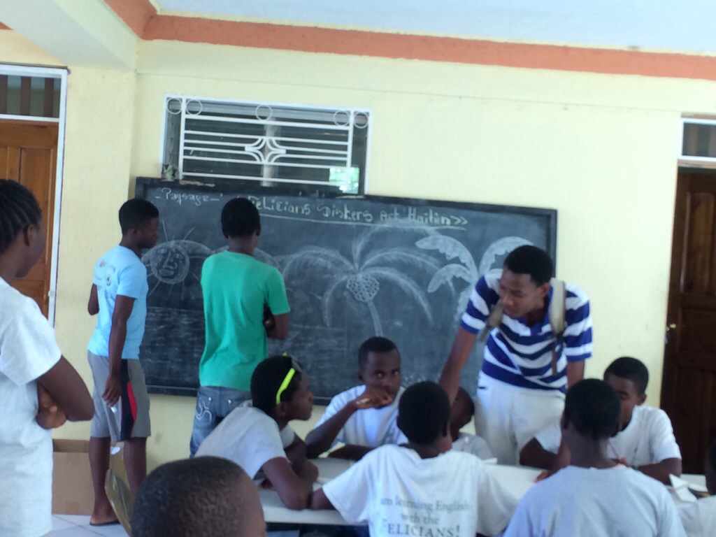 On Friday and Saturday, a group of young teenagers meet in order to have art classes with the children in our area. This group of teen artist was formed after Sr. Francis’ visit last December. We were able to give the group many of the art supplies that came from Our Lady Queen of Peace, Maywood, NJ. They are very proud to be called Felician Sisters Artists Haiti; they wear our Felician t-shirts with great pride.