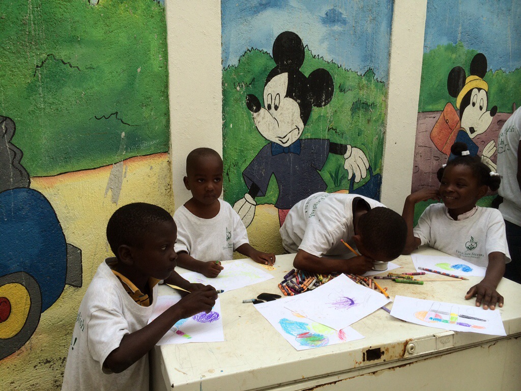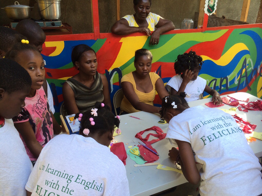 Every Friday and Saturday, the Felician Sisters Artists Haiti gather for activities; and we are rejoicing that we now have a group of girls with a special arts and crafts project just for them. The girls are learning how to make floral paper art. We remember doing this when we were children. Their hope is to make paper flower decorations, which they can sell for church and other celebrations. In Haiti, there are not that many real flowers for decorating, so they depend on paper flowers. As you can see from the pictures, these flowers are beautiful.