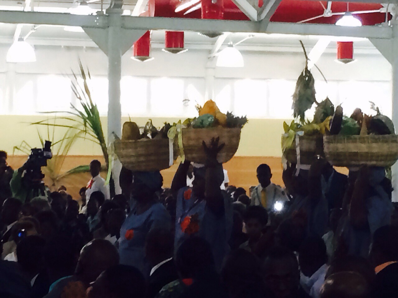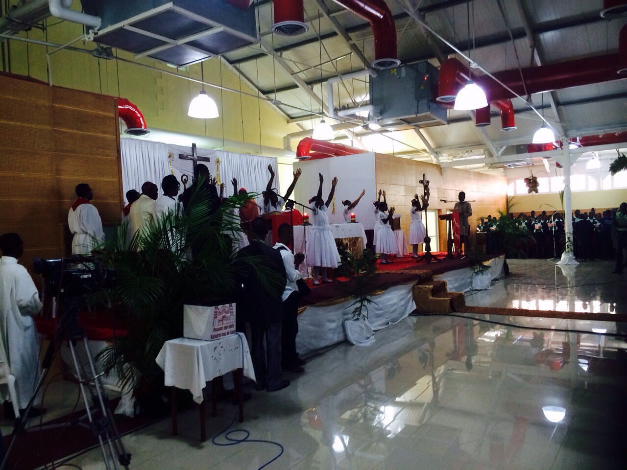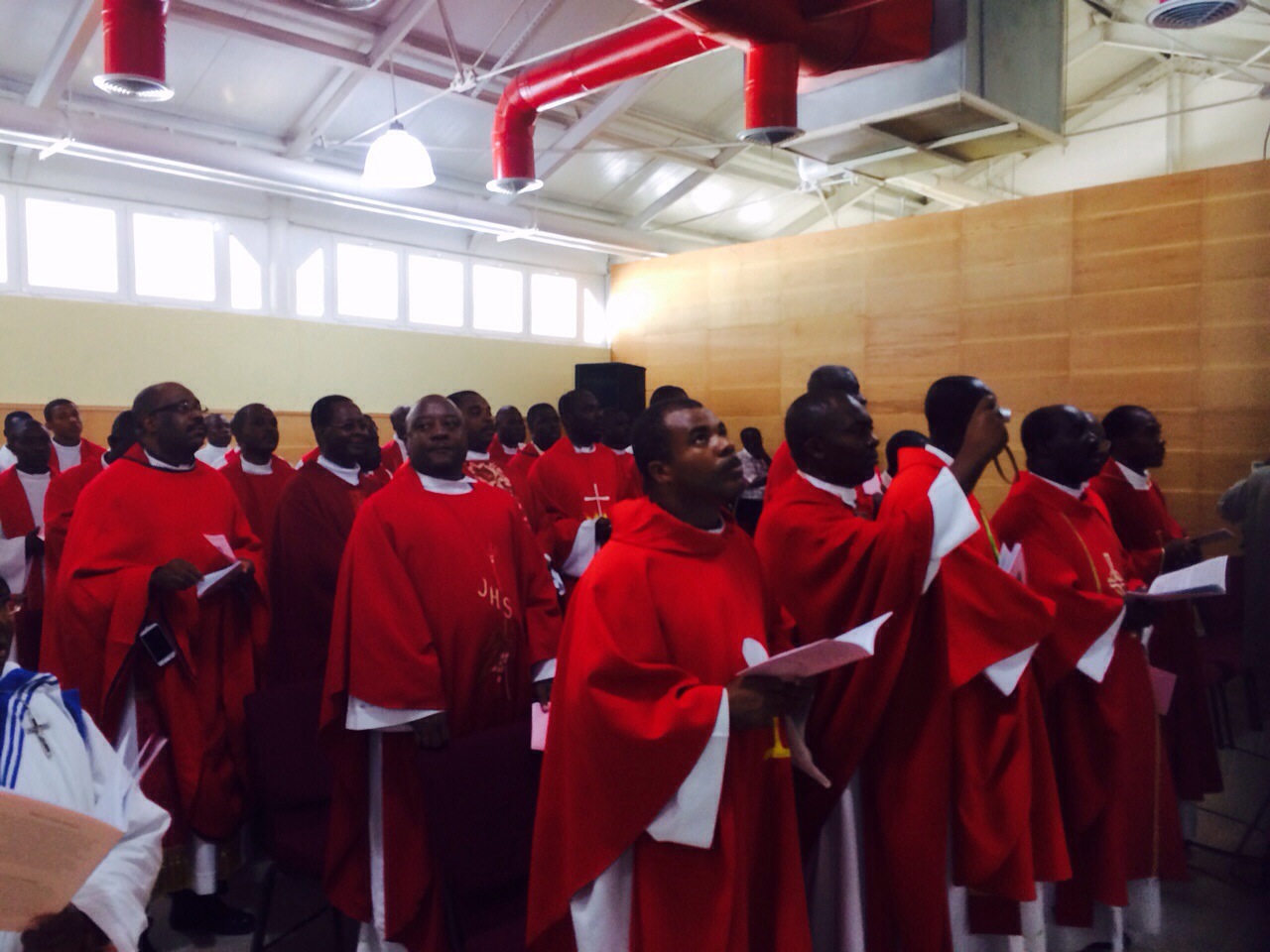 May 1 was another great day for the people in the diocese of Jacmel who gathered to celebrate the Eucharist with the Cardinal. There were so many people, with all the priests and religious of the diocese gathered together in one place. Once again it was as if the Pope was coming. The celebration took place in the newly-built conference center in the middle of Jacmel. This was the first time we had been in this building. Cardinal Chibly reminded us that we are called to be about the mission of Jesus Christ; we have a universal call to rebuild the Church, especially here in Haiti. He reminded us that Pope Francis has a special love for the poor. We may be poor physically, but spiritually we have our faith community to proclaim the Good News that Christ is truly risen and is in our midst. We must work and walk together! The choir and the dancing all made a joyful noise to the Lord! “>