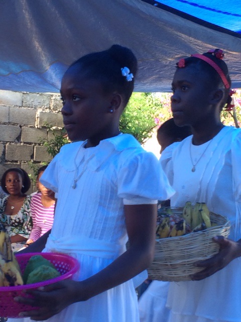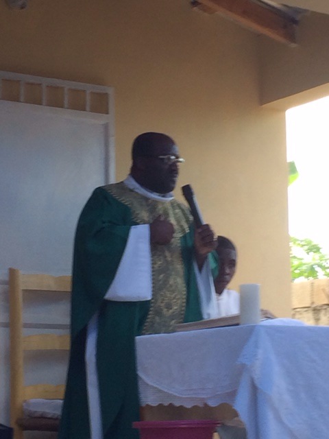 Yesterday Sister Mary Charlotte from Lodi, NJ, and Sister Mary Andrew from Beaver Falls, PA, arrived in Jacmel to help us in the mission for two weeks. Today they came with us for Mass in Bwa Bef, where we needed to speak with the people about Klinik Manman Angela, which would be coming to this area to serve the poor. The people have no church so the Mass was in front of someone’s home. This is where the clinic will take place for the people in this area who otherwise have no access to medical care. After Mass, we spoke to the people about the clinic that will come every two weeks. Now the clinic is going to eight places where the poor can be served. Mesi Bondye mesi! Thank you, God! We also thank our benefactors who help us and support the clinic.
