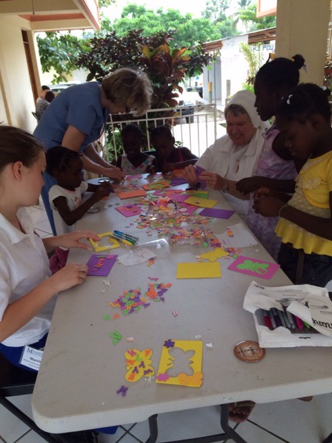 Sr. Victoria and volunteers help in Klinik Manman Angela