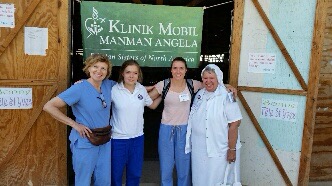 Sr. Victoria and volunteers help in Klinik Manman Angela