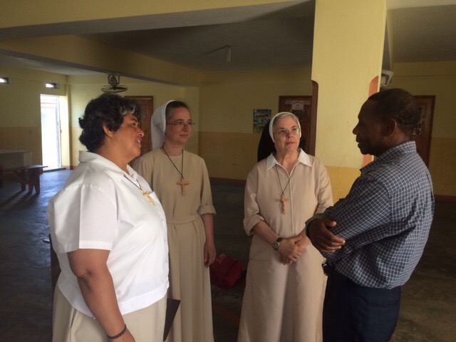 We thank every one for your prayers and messages as we made it through the tropical storm named “Erika.” We had prepared ourselves as best we could by putting everything inside a room, and we took down the crucifix and icons from the outside walls. We made sure the chairs were all inside a room. We had high winds and heavy rains throughout the night. Today all is calm; we still have some winds, but all is well. There are many banana trees down, and there is a lot of garbage everwhere. Our neighbor lost many of his banana and papaya trees. Many had extreme flooding into their small homes because they do not have secure doors, windows, and roofs. Some people live in what looks like a hut made of babana leaves; these were destoyed. Thanks be to God for His glorious mountains that we feel protected us from even greater winds and damage.