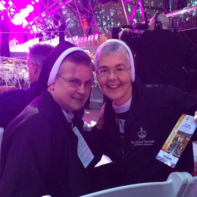 We went to our seats, and they were right in front of the Holy Father’s chair! Then Sister Sledge came out and started to sing “We are Family.” We started to dance in our seats. We thought about all our Felician Sisters throughout the world, all families, friends, benefactors–everyone who accompanies us in the Haiti mission!