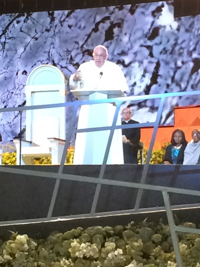 Then Pope Francis came to the podium, right before us. We were literally sitting at his feet. He spoke from the depths of his heart, about the gift and blessing of the family and the call to love and forgive. We felt as though he was looking at us.