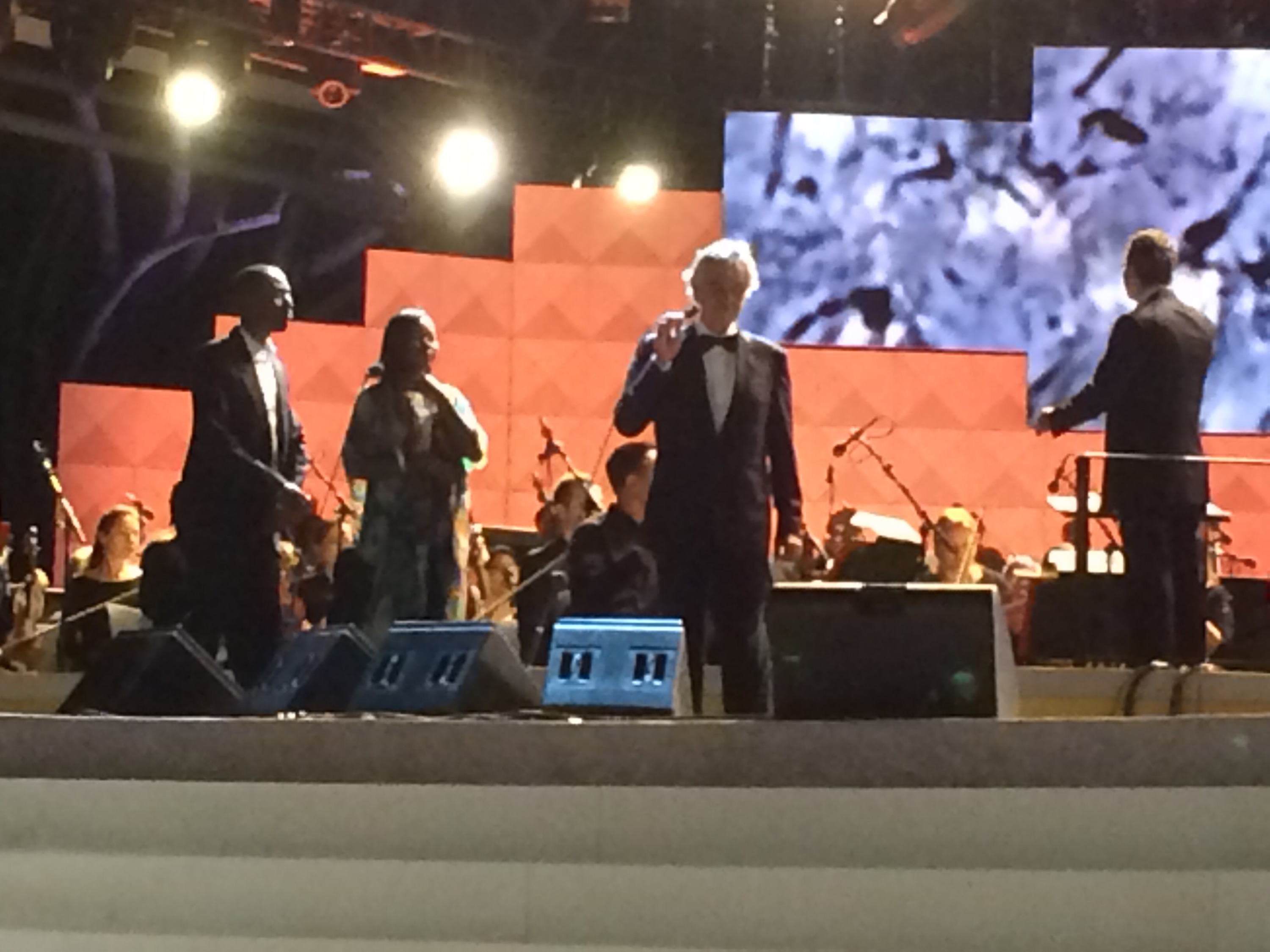 After he spoke, Andre Boccelli came out and sang the Our Father, the most moving experience of unity in the moment.
