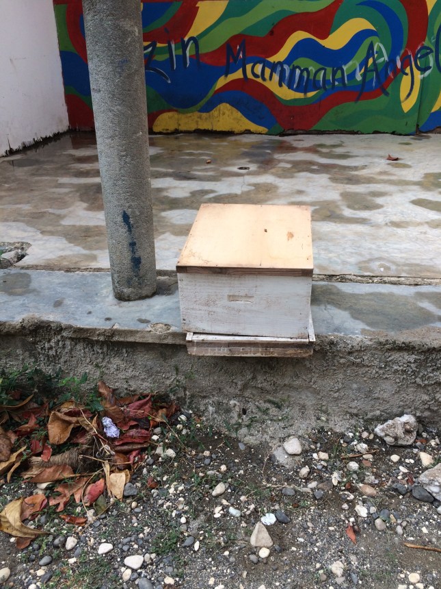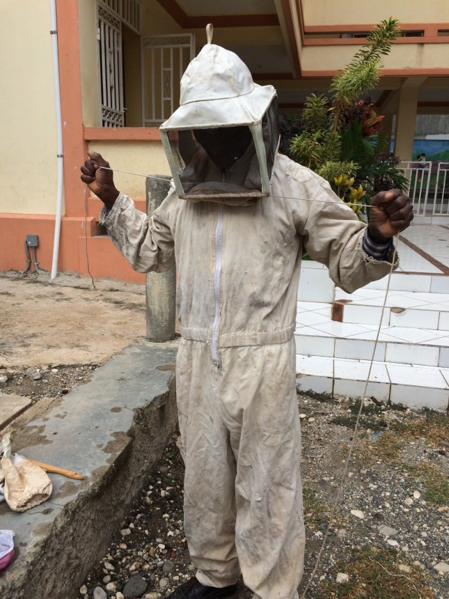 When we returned to Jacmel, we were welcomed by a swarm of bees πthat had made their home in our kids’ dining room. After a week of wondering what we should do, we finally found out that Daniel, the gardener and worker for the Bishop, was a trained Beekeeper. We asked if he could come and take care of the swarm of bees.