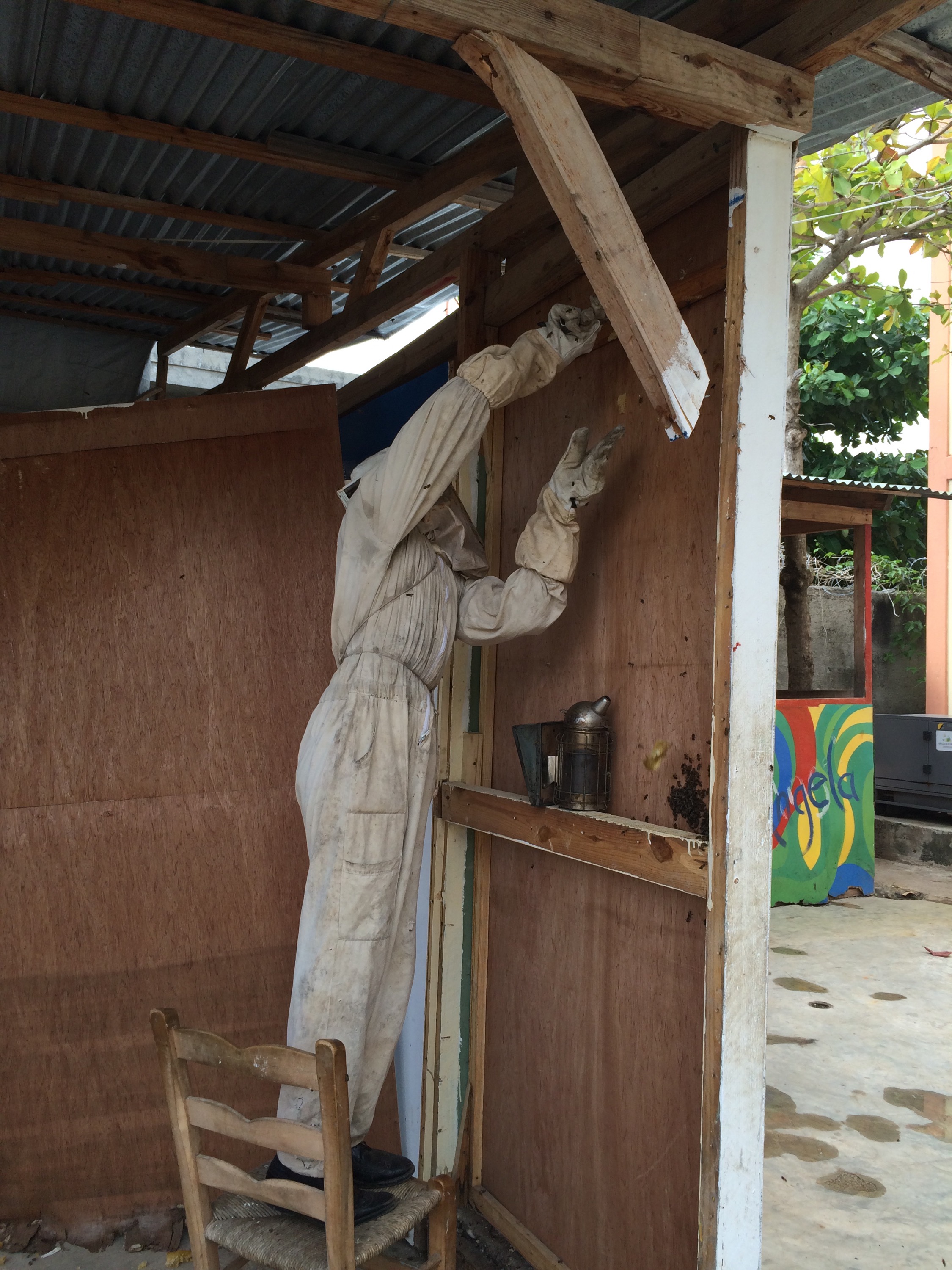 When we returned to Jacmel, we were welcomed by a swarm of bees πthat had made their home in our kids’ dining room. After a week of wondering what we should do, we finally found out that Daniel, the gardener and worker for the Bishop, was a trained Beekeeper. We asked if he could come and take care of the swarm of bees.