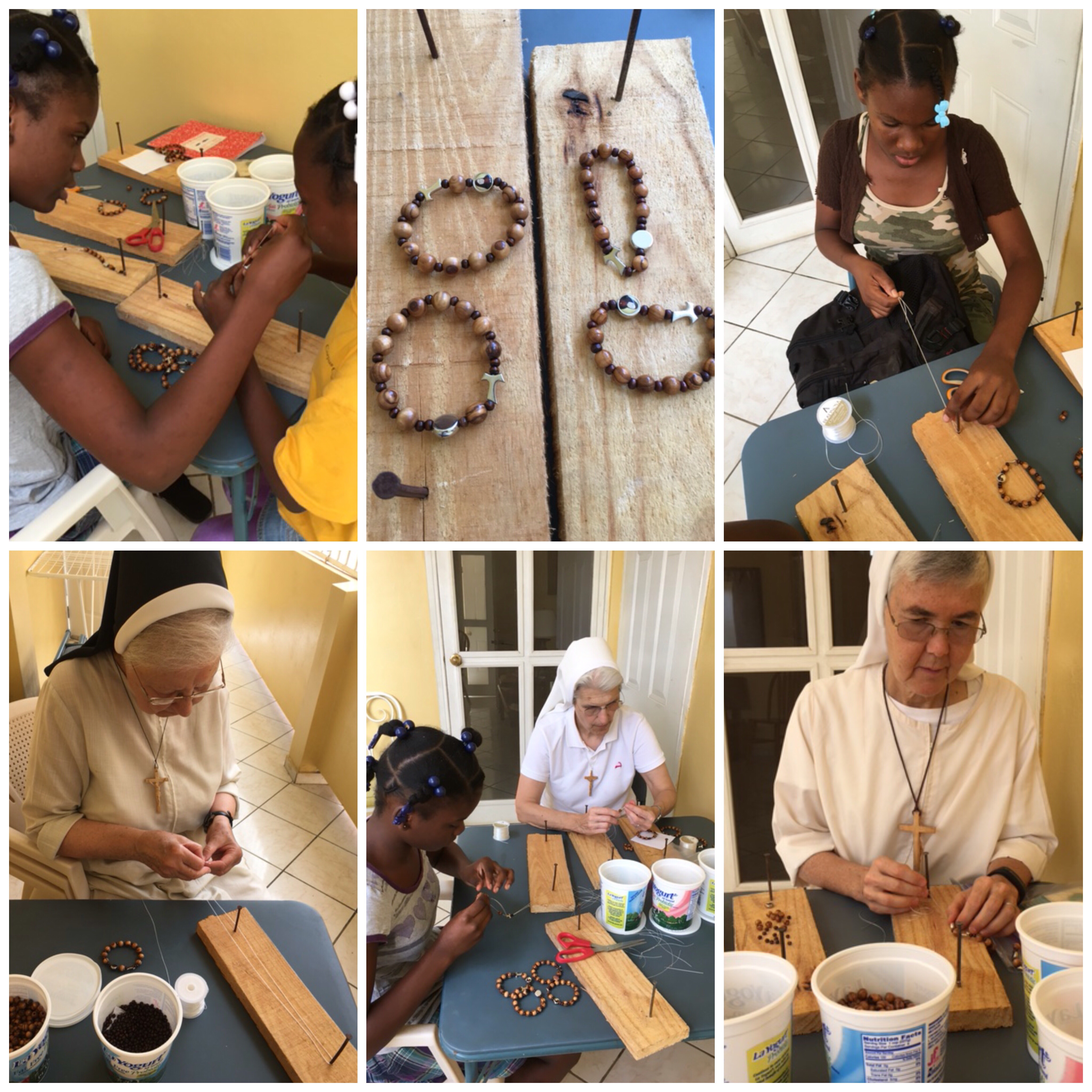 Presence is very much a part of our mission here in Jacmel. We all have the gift and the need to share it with one another. Sisters Adrianna and Nancy are doing that in various ways as they share conversation with our teens, treat wounds or babysit while one of our mothers is working in the Mother Angela kitchen to feed our children.