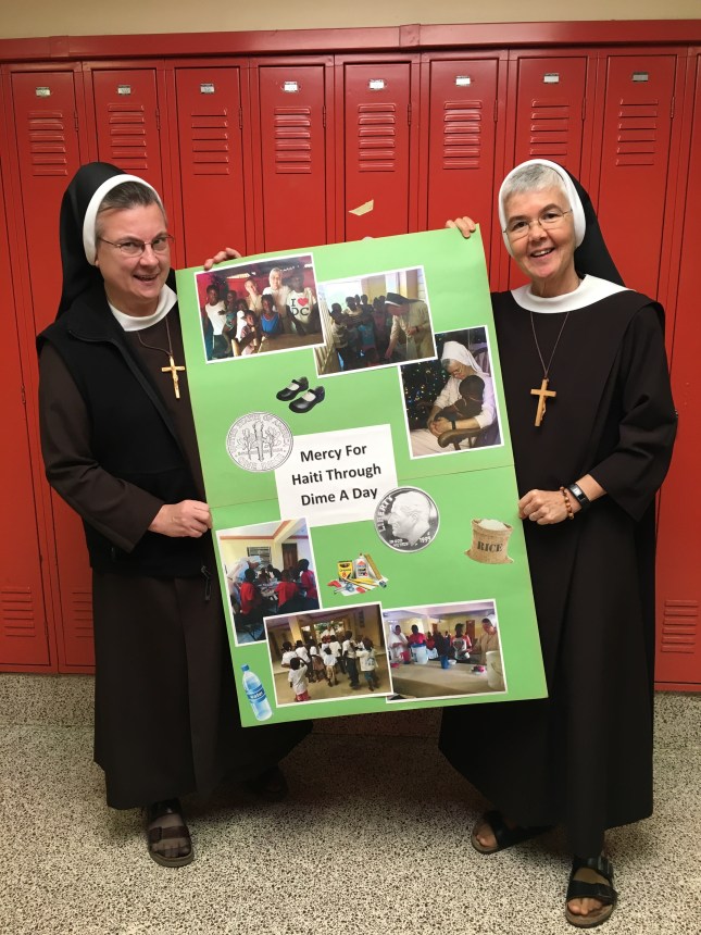 On Thursday, May 12 we went to Bishop Ahr High School in Edison, NJ to say thank you to all the Administration, Faculty, Staff and Students who participated in their Lenten Mercy for Haiti through the Dime a Day project for the Felician mission in Haiti. They gave a large donation that will assist us many of our activities. The Green Club also presented us a generous check for our Water with Blessing project. God is good all the time!!!!!!! Thank you so much Bishop Ahr High School faith community for being on mission with us.