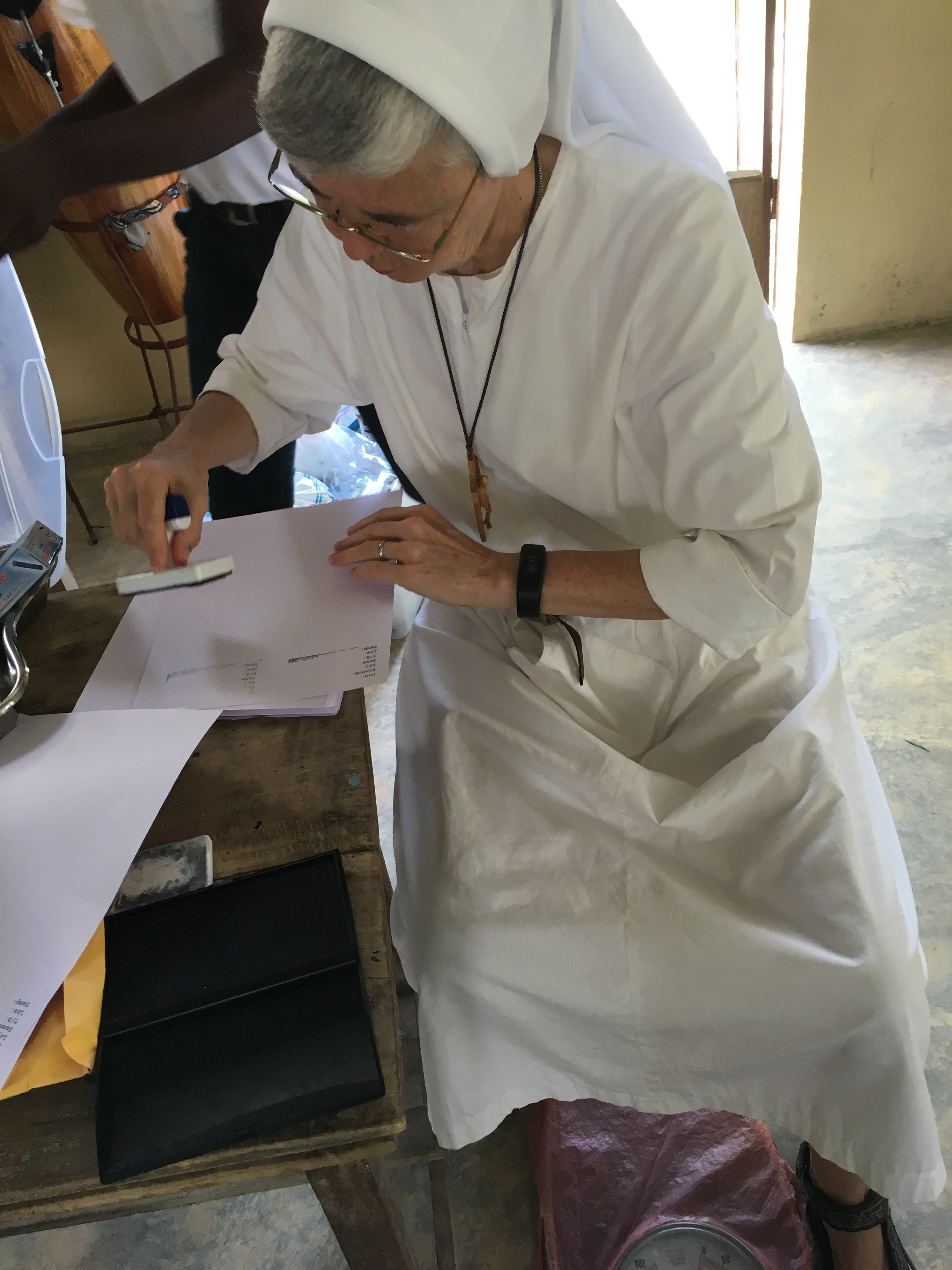 When the team arrived, people were waiting for us in the chapel. Sr. Desirè helped our pharmacist with medications, and Sr. Marilyn helped the nurse to get the vital signs. We saw 117 patients in one day. Thank you for supporting the Mother Angela Clinic!