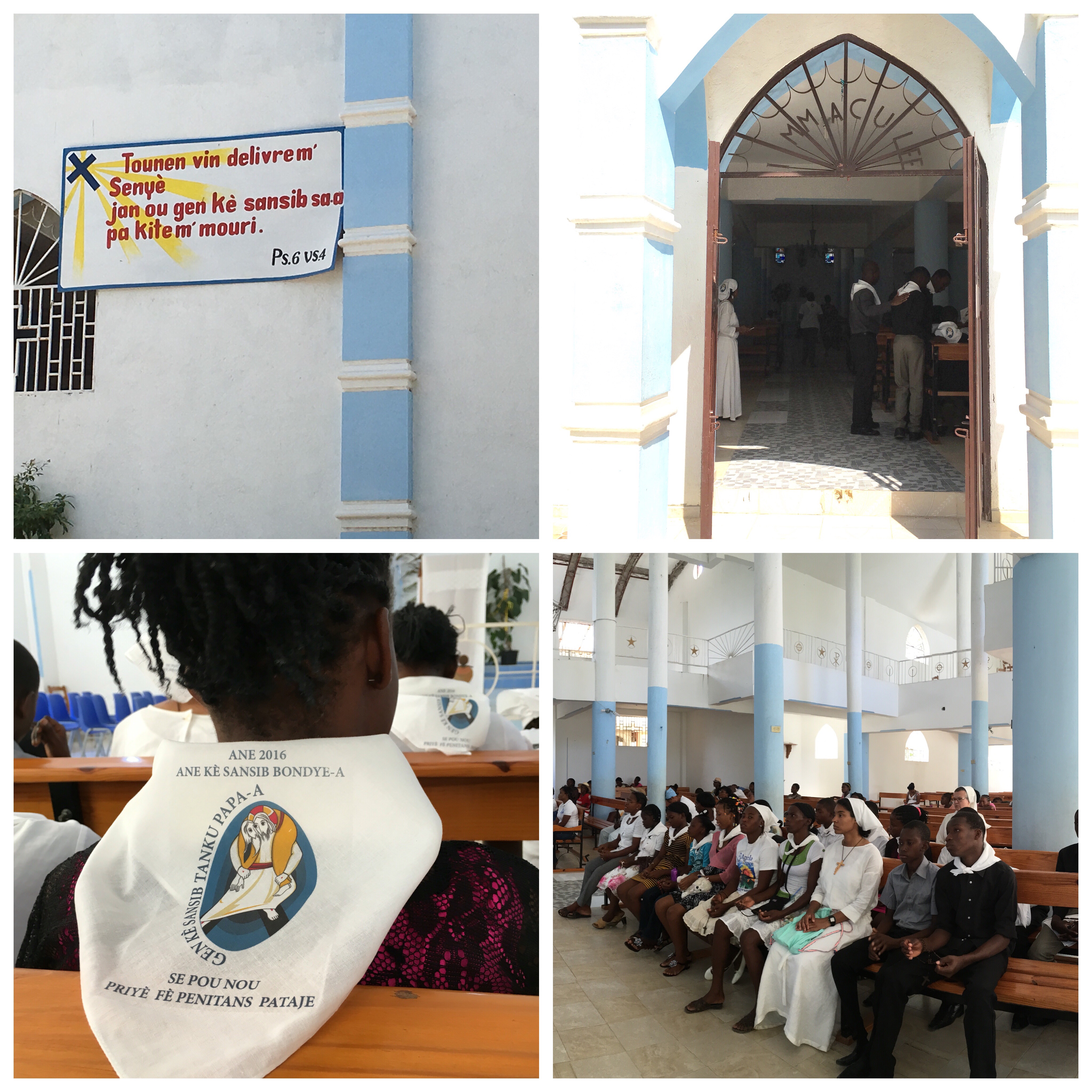 On Saturday, July 9, we took our teens and young adults who are preparing for the sacraments on a Year of Mercy Pilgrimage. The Diocese of Jacmel has designated Immaculate Conception Church in Zoranje as the place for pilgrimage and the holy door for the Year of Mercy. We started the day with a catechesis given by our seminarian, James, who explained the history of the Holy Year of Mercy, the significance of the Door, and the grace of indulgence. We then prayed the Divine Mercy Chaplet, received the Sacrament of Reconciliation, prayed the Rosary, and attended Mass. We thank Madam Omanie who helped us lead the songs and chaplet, as well as Fr. Poussin and Fritz who helped us with the driving. At the end of the day every one of us walked through the holy door of Mercy. It was a mercy-filled day.