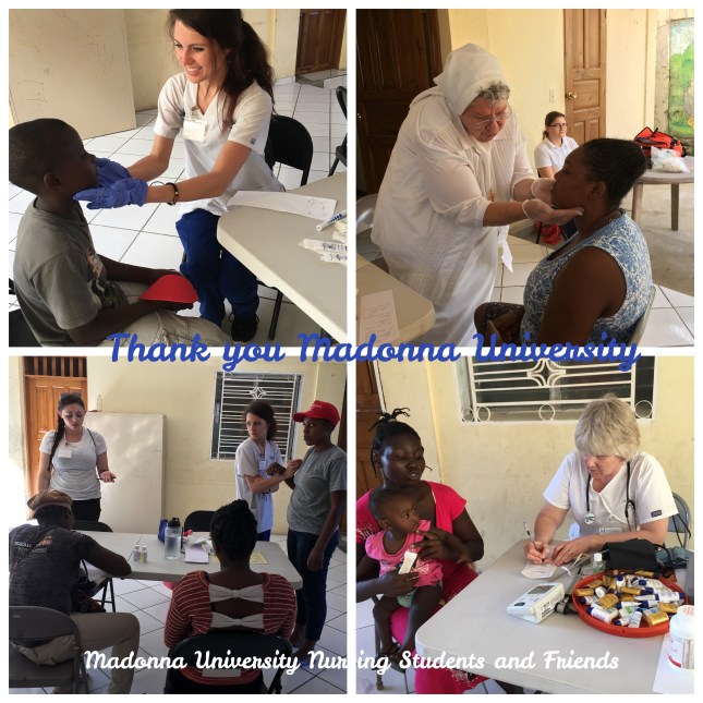 On Friday, March 3, Sr. Victoria Marie arrived with six nursing students and friends to share in our Haiti Mission with the Mother Angela Clinic and homecare nursing. As always, Sr. Victoria brought many over-the-counter medicines and vitamins, hygiene kits, and other useful items for the mission. We always enjoy our Madonna University friends who walk in relationship with our Haitian sisters and brothers. We thank them all for sharing their skills and passion for healthcare with us.