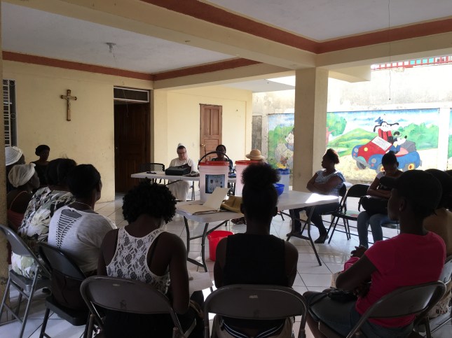 On Thursday, March 9, and on Monday, March 13, we had a new group of “Water Women” for formation. These women are very special because they are from a group of women who are sick with AIDS. There is an organization that is led by a Haitian woman who tries to help these women physically, psychologically and spiritually. They are fragile in many ways but still wanted so much to become “Water Women” for their families and neighbors.