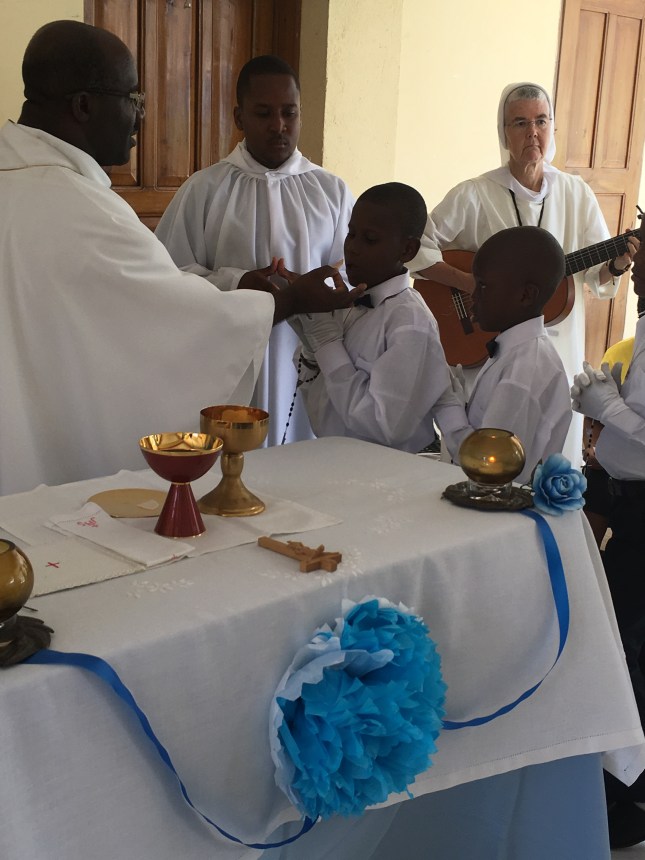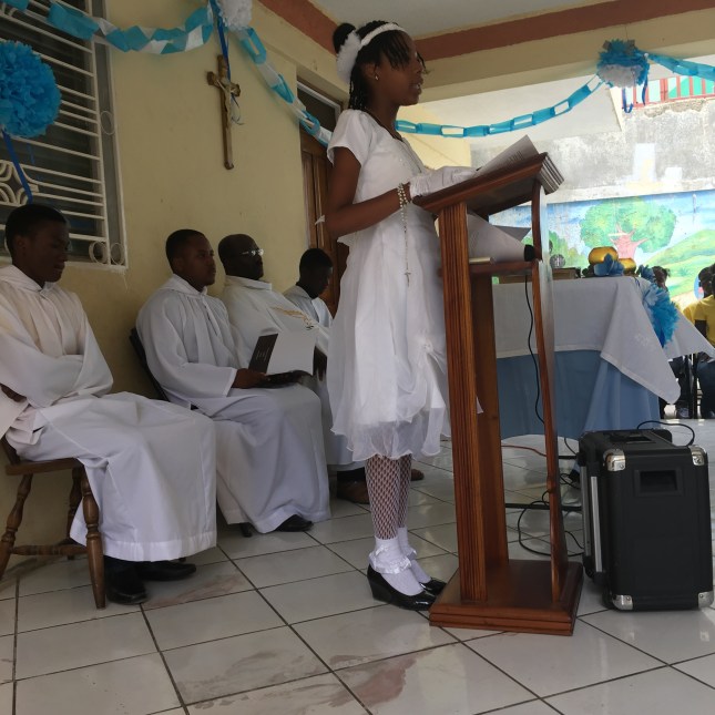 During the week of June 19-23, our First Communion children came for Mass everyday. It is a tradition here in Haiti, especially the day after their First Holy Communion, that the children come to Mass that Monday dressed in their Communion apparel. On Saturday, June 24, we had our vigil Mass for Sunday. The youth choir sang, and the children came dressed in their Communion clothes. Once again, we are grateful for all those who made this possible for our children, who would not have any other way to receive Jesus in the Holy Eucharist.