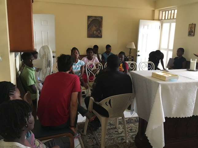 In the heat of the day, after 3 p.m. on Wednesday, June 21, they came hot, tired, and dirty….Fr. Alan from Africa and Daniel from Spain. For many years, both of these men have been involved in the Neocatechumenal Way. They are walking itinerant missionaries. The Way sends them to proclaim the Good News of Jesus Christ who died for our sins and who rose from dead so we can have life eternal. They came to Jacmel as Jesus sent his disciples, without money, clothes, telephone or any other security. When they came to our house, we were getting ready for Mass, so we gave them water and invited them to stay. After Mass they met with our youth and shared their stories. Later, we told them where they could shower, and we gave them a change of clothes. We then washed their dirty clothes to give back to them the next day. We gave them some sandwiches and then a ride to the next place they wanted to go to bring the Good News.