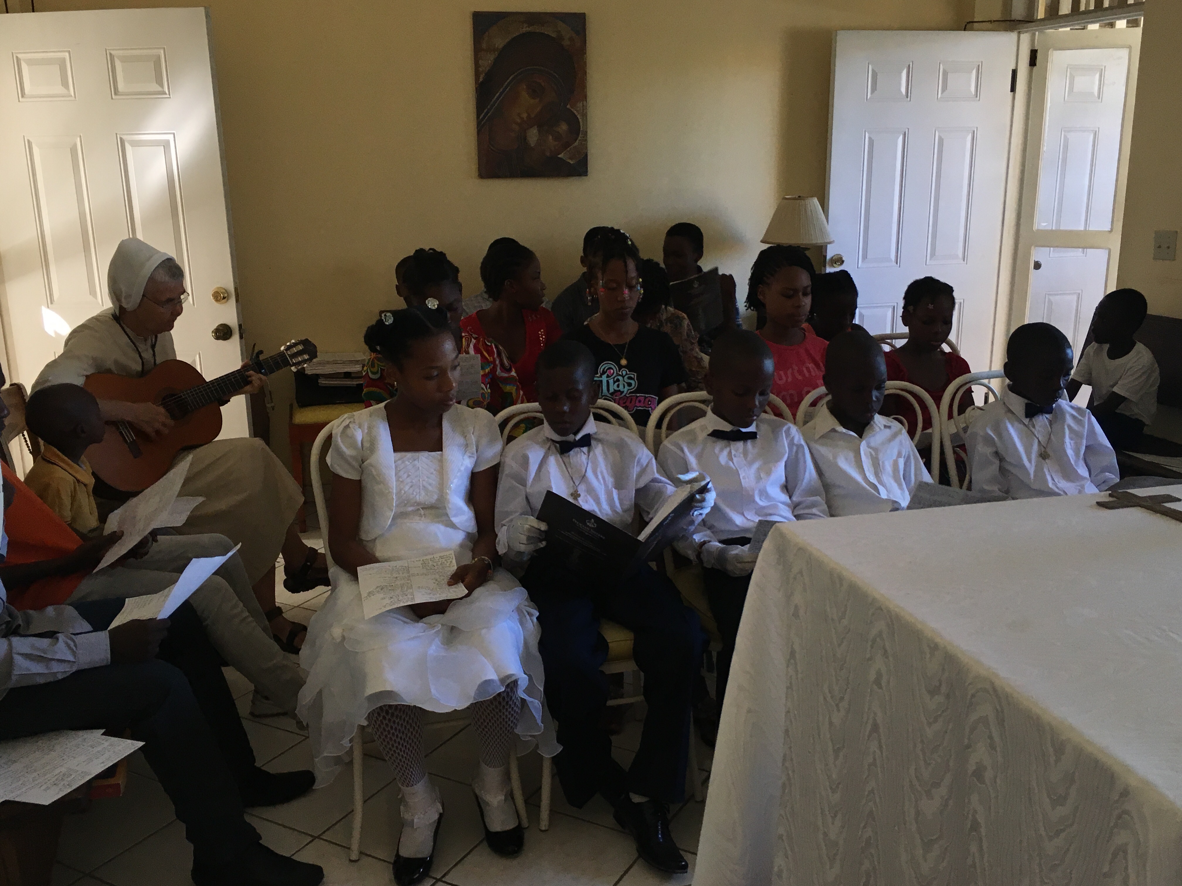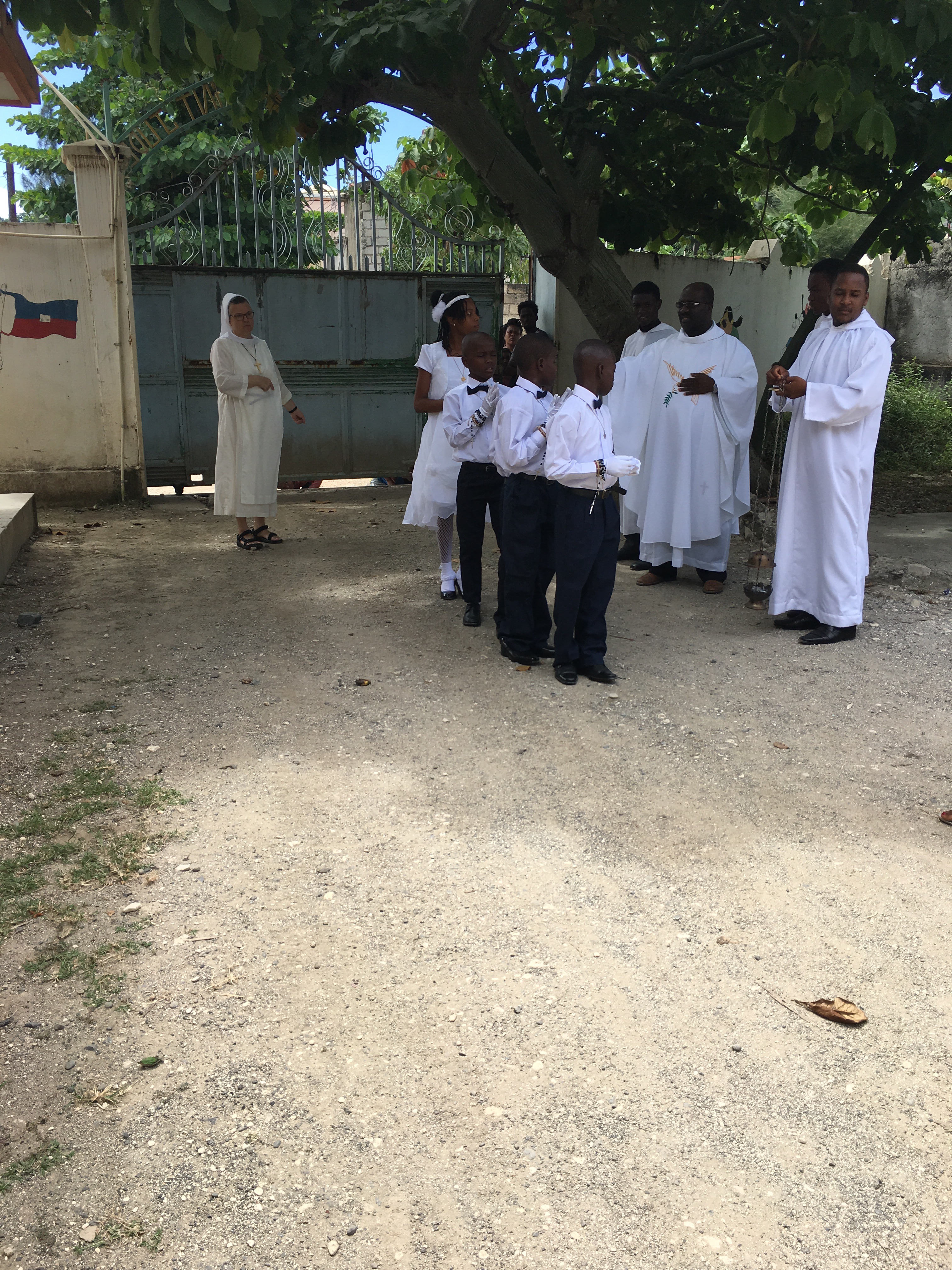 During the week of June 19-23, our First Communion children came for Mass everyday. It is a tradition here in Haiti, especially the day after their First Holy Communion, that the children come to Mass that Monday dressed in their Communion apparel. On Saturday, June 24, we had our vigil Mass for Sunday. The youth choir sang, and the children came dressed in their Communion clothes. Once again, we are grateful for all those who made this possible for our children, who would not have any other way to receive Jesus in the Holy Eucharist.