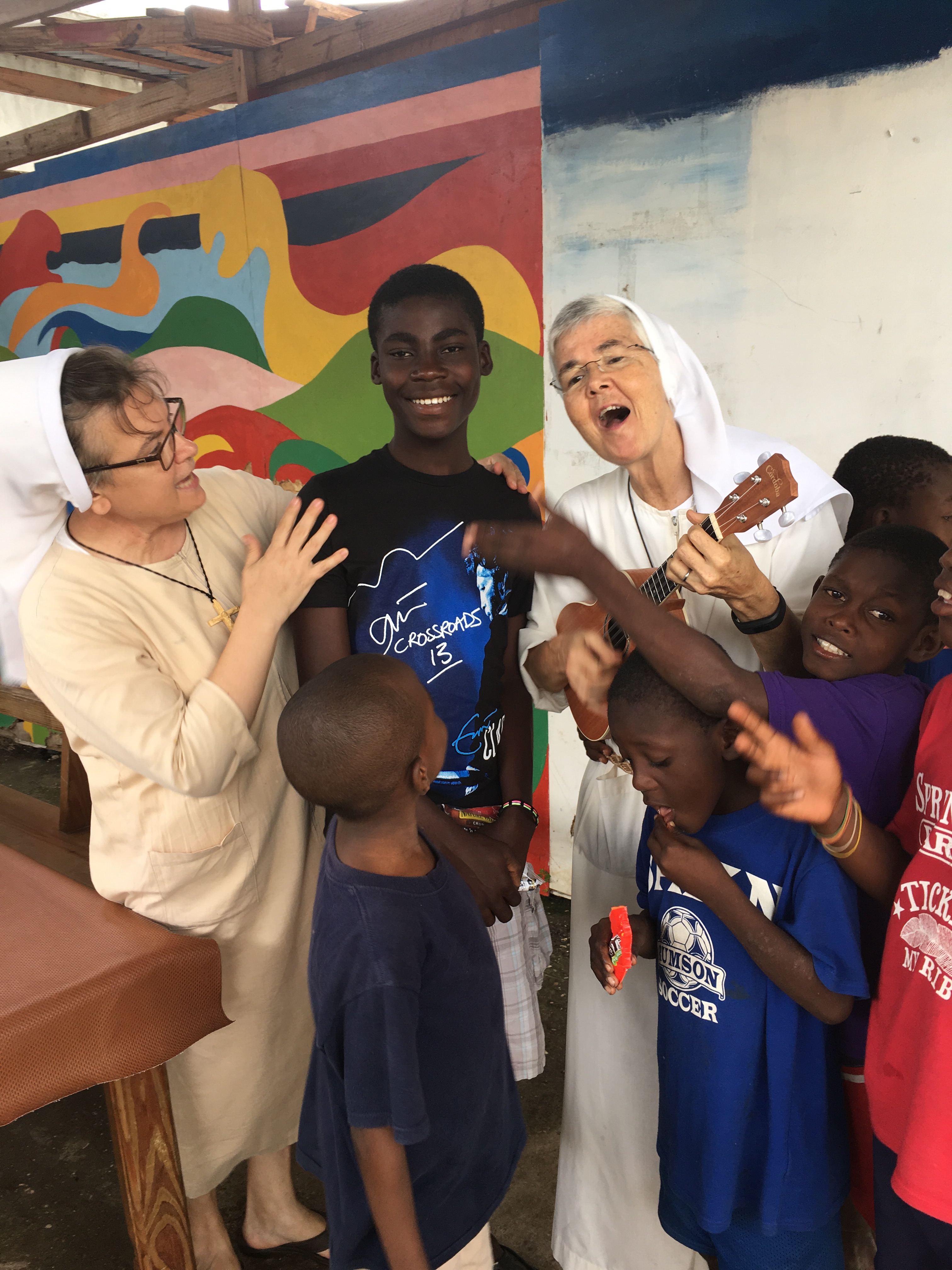 We were invited to Jacmel by Bishop Launay Saturne, who gave us the second floor of a school building to begin the ministry of presence in Jacmel. The Lord was waiting for us here as He already had plans of what was to come: The Mother Angela Kitchen, Mother Angela Mobile Clinic, English instruction, the Pay-it-Forward program, assisting kids and teens to go to school, teaching women to read and write, sponsoring the “Water with Blessing” project, starting a teen choir, visiting homes, and, of course, introducing our Faith Formation program. We, too, are amazed at God’s grace, strength, and powerful presence in our midst. Thank you to all who accompany us with our Haitian brothers and sisters.