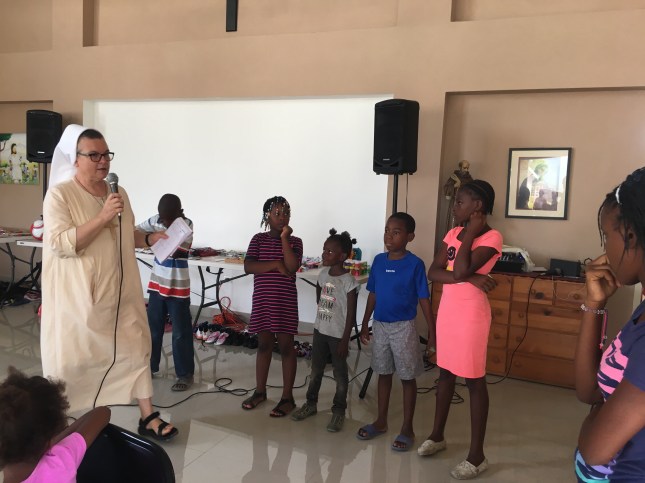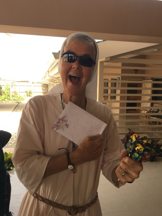 On Monday, July 2, the kids were invited to come and celebrate…Sr. Marilyn’s birthday, their birthdays, and all those who had passed their classes and had the highest report card! There was rice and beans, chicken, cake and soda for all. The kids brought cards and lollipops for Sr. Marilyn.