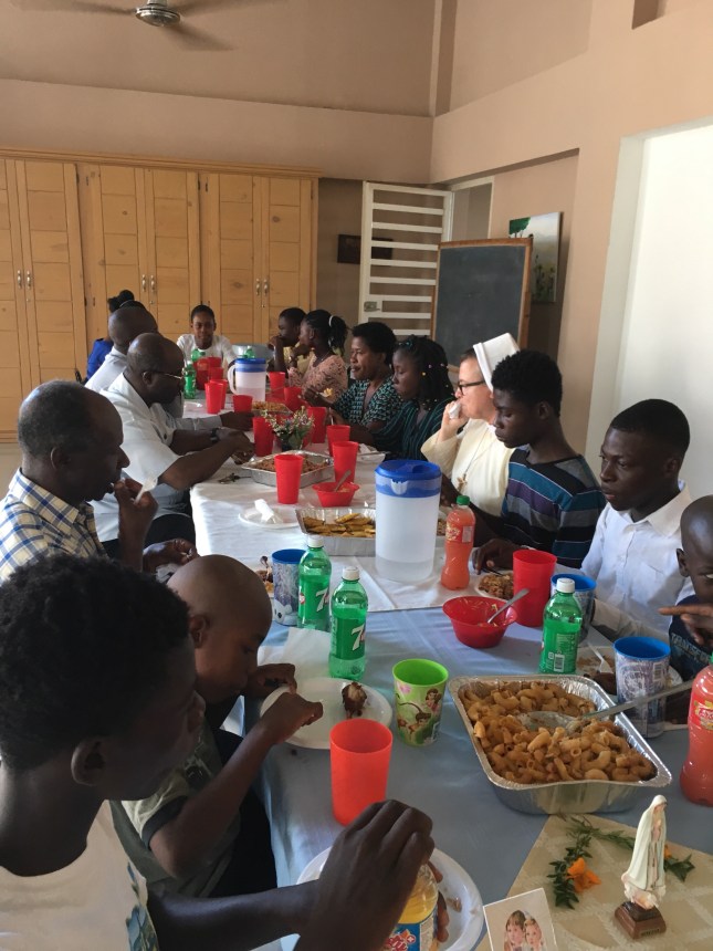 On Tuesday, August 7, Sr. Marilyn began her journey to return to Jacmel. Very happy to return to her Haitian family, she was to leave on her early 5:40 a.m. flight to Orlando, Florida. then to Port au Prince, Haiti. She arrived on time in Orlando. Eric, our JetBlue pilot friend, was even going to be the pilot for this run. With an excited heart to re-enter the mission, a phone call came from Sr. Inga, who was in Jacmel. There were demonstrations near Jacmel and Fritz, our driver, could not pass to get to the airport. He had to turn around and return to the Mission. The best thing for Sr. Marilyn to do was to wait it out, stay overnight in Orlando, and try again on Wednesday. JetBlue changed the ticket, free of charge. Eric was still flying the plane, but he gave his car keys and car to Sr. Marilyn to go to stay with his family over night. His wife, Cassandra, and family welcomed Sr. Marilyn like one of the family. Now remember, the Gospel for the day was Peter going to Jesus walking on water saying: βTake courage, it is I; do not be afraid.β