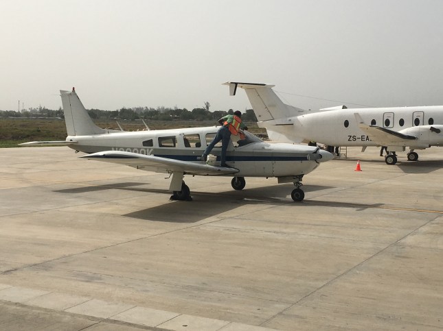 Sr. Inga was concerned for Sr. Marilyn with three bags and needing to get to this small airport. She had Fritz and Jean Philip leave very early in the morning, before the second day of demonstrations started in JACMEL. When Sr. Marilyn arrived in Port au Prince, they were waiting, ready to take her to the small airport next to the international airport, which was about a 10 minute drive away. Roger, the pilot, was waiting Sr. Marilyn in his plane.