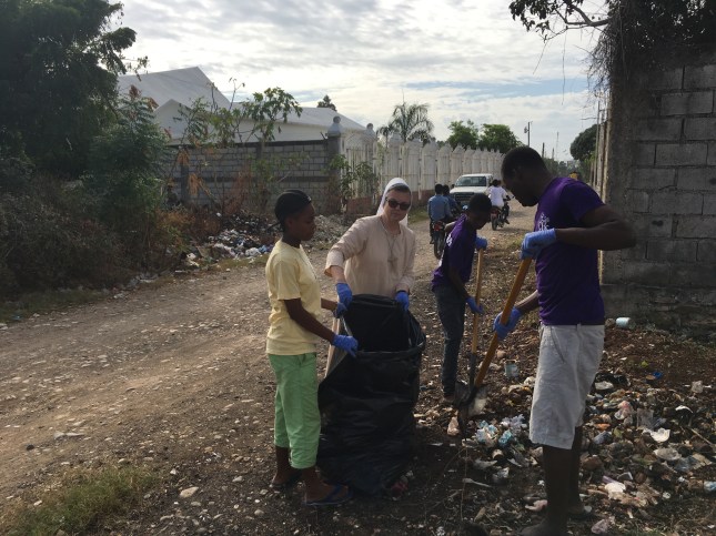 On Friday, December 21, that is exactly what our teens did–prepared the way for the Lord! There is so much garbage around our streets, and we wanted to make a difference with the way the area looked for the celebration of the Nativity of the Lord. We wanted to make a straight way for the Lord’s coming by the Cathedral Church, which is around the corner from us, so we cleaned up the garbage as best we could. Then signs were made to be placed in areas where people seem to throw their garbage. We even got our neighbors to help.