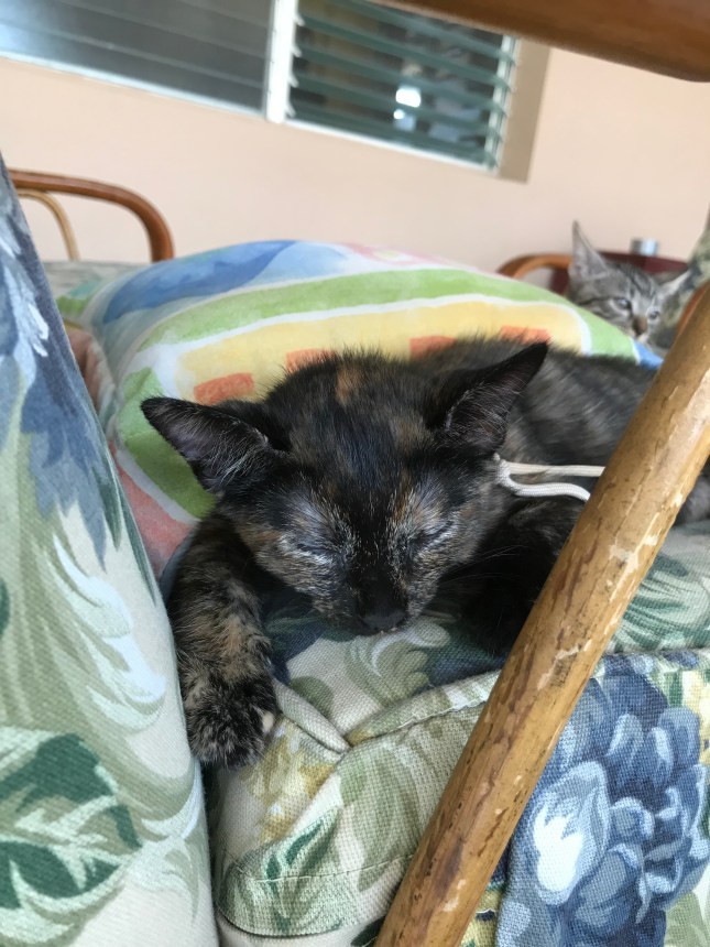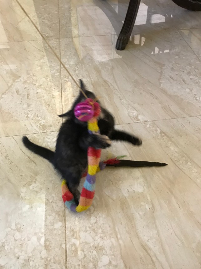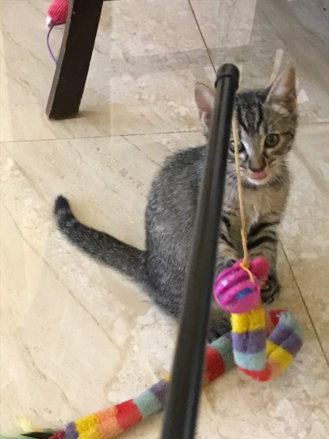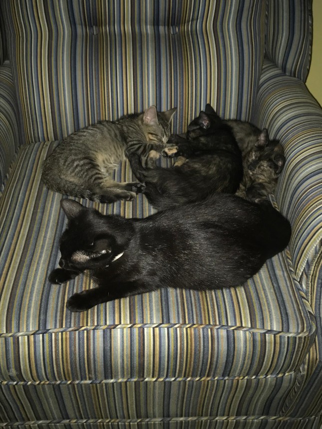A week before we left for New Jersey, our cat, Angelika, had three kittens. This was a first for the both of us. Thank God for Google! The three of them were healthy and very cute. Jean Philip would taker care of them while we would be away. We thought this would only be for only two weeks but, due to the political situation here and our surgeries while in the States, it ended up being two months. When we returned, the kittens were now two months old and needed to be given away to new homes. For the first few days we were here, we needed to get them used to human touch and ween them from Angelika.