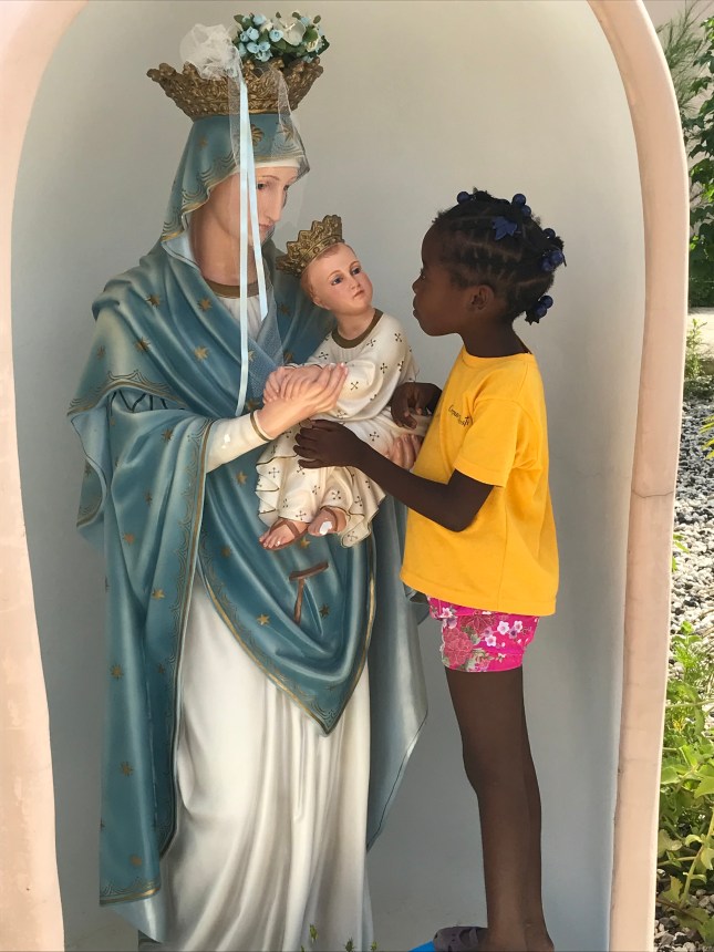On Saturday, May 11, we had our May Crowning with the Faith Formation classes. The day was sunny and, of course, hot but a beautiful day for Our Lady. The way we chose the crowner was to see who had a birthday in May. Julianna raised her hand in excitement. Julianna is a little girl who has been cross-eyed since birth. She actually sees double. This does not stop her from doing anything. We knew this had to be a first-time event for her. The children prepared their song, “Ave Maria” to sing during the Crowning. The procession began with delight.