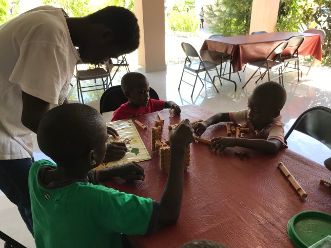Teaching Jean Phillip and Annette how to play guitar so they can be cantors too.